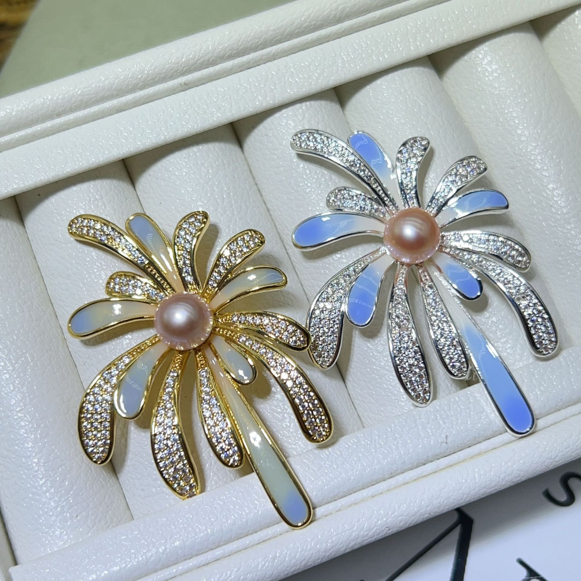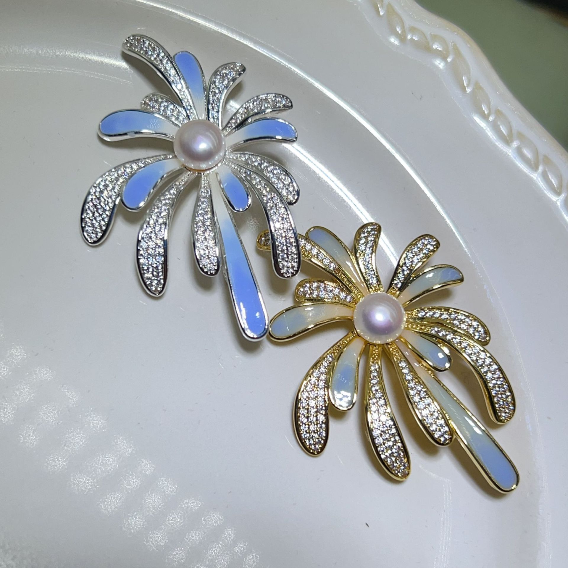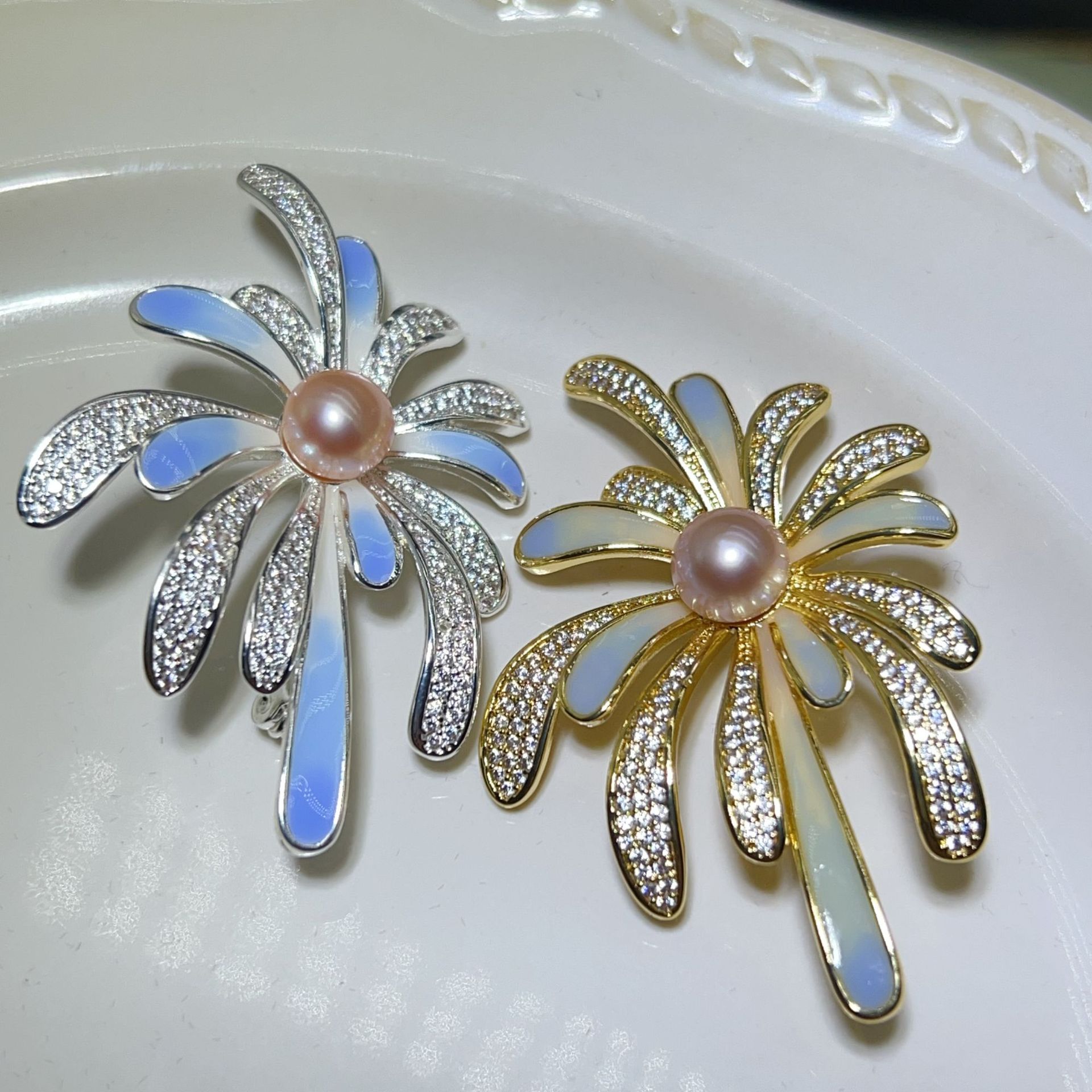 Zhuji Pearl Design Синий фейерверк брошь натуральная пресноводная жемчужина медная позолоченная эмали цветной циркон булавка