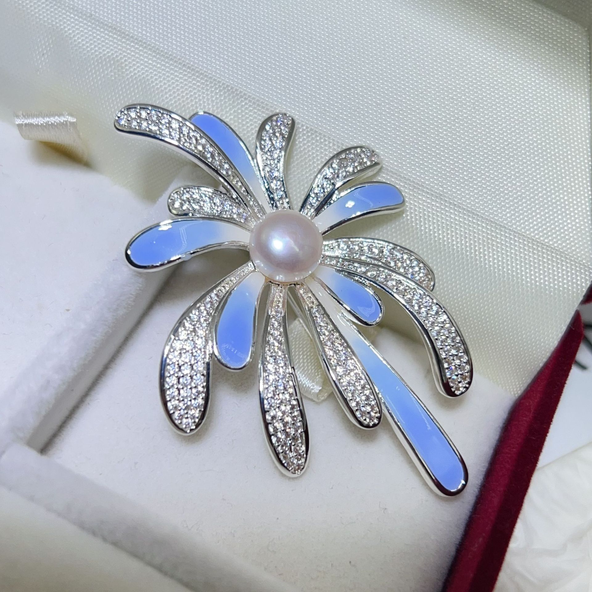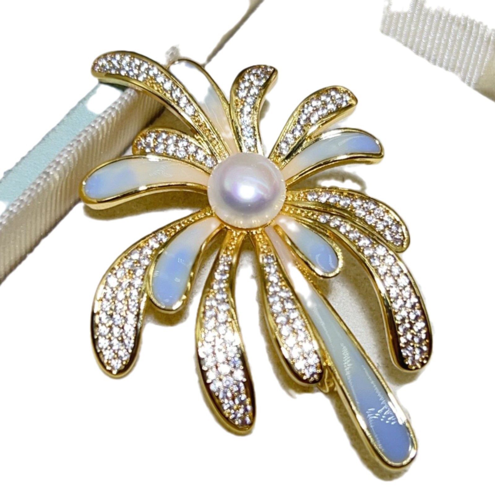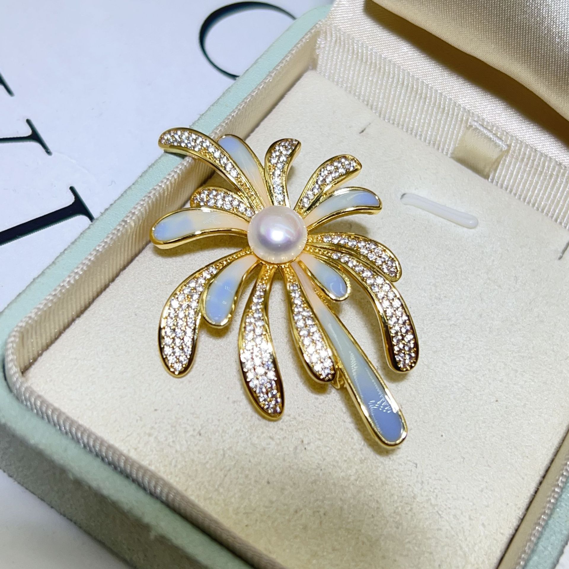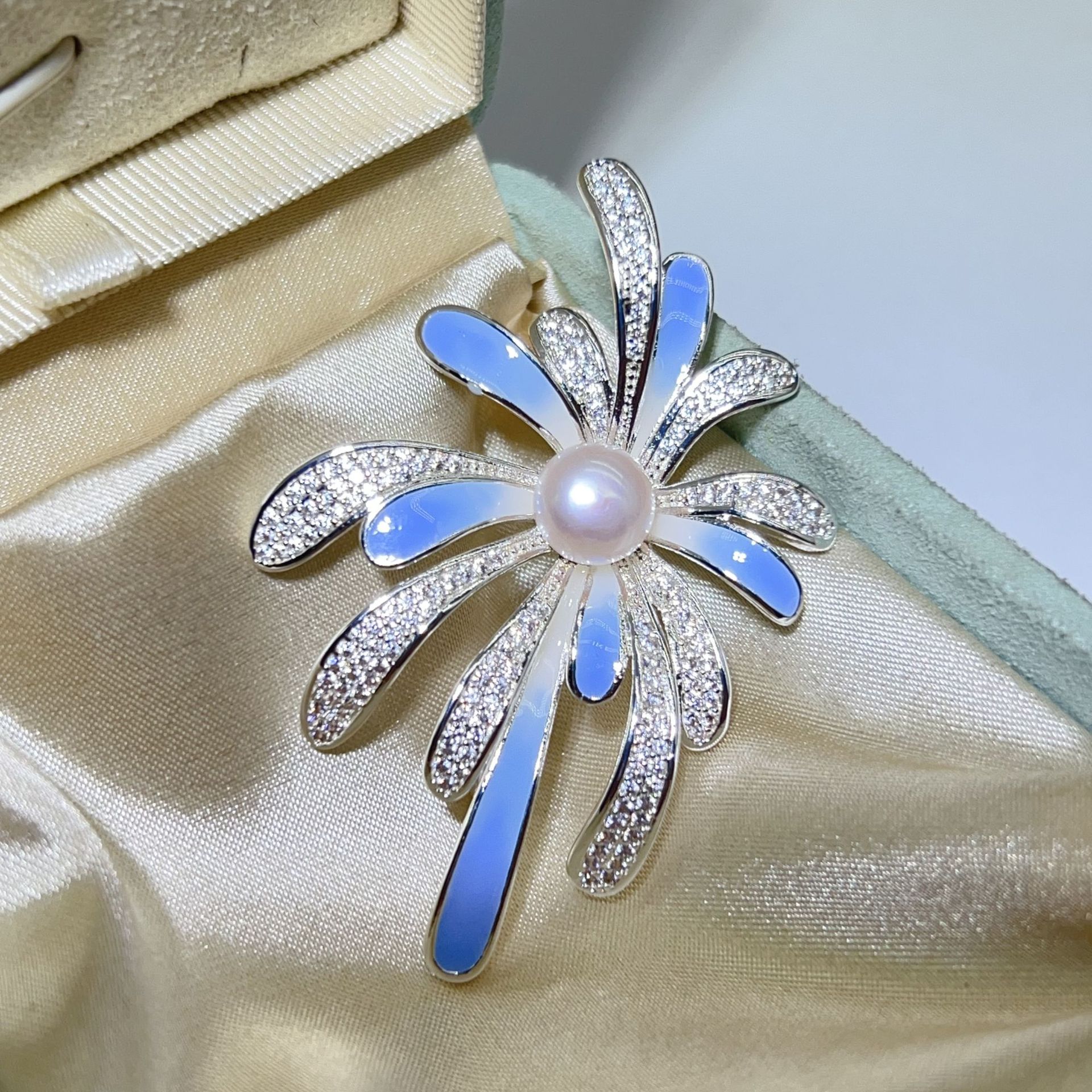 Zhuji Pearl Design Синий фейерверк брошь натуральная пресноводная жемчужина медная позолоченная эмали цветной циркон булавка