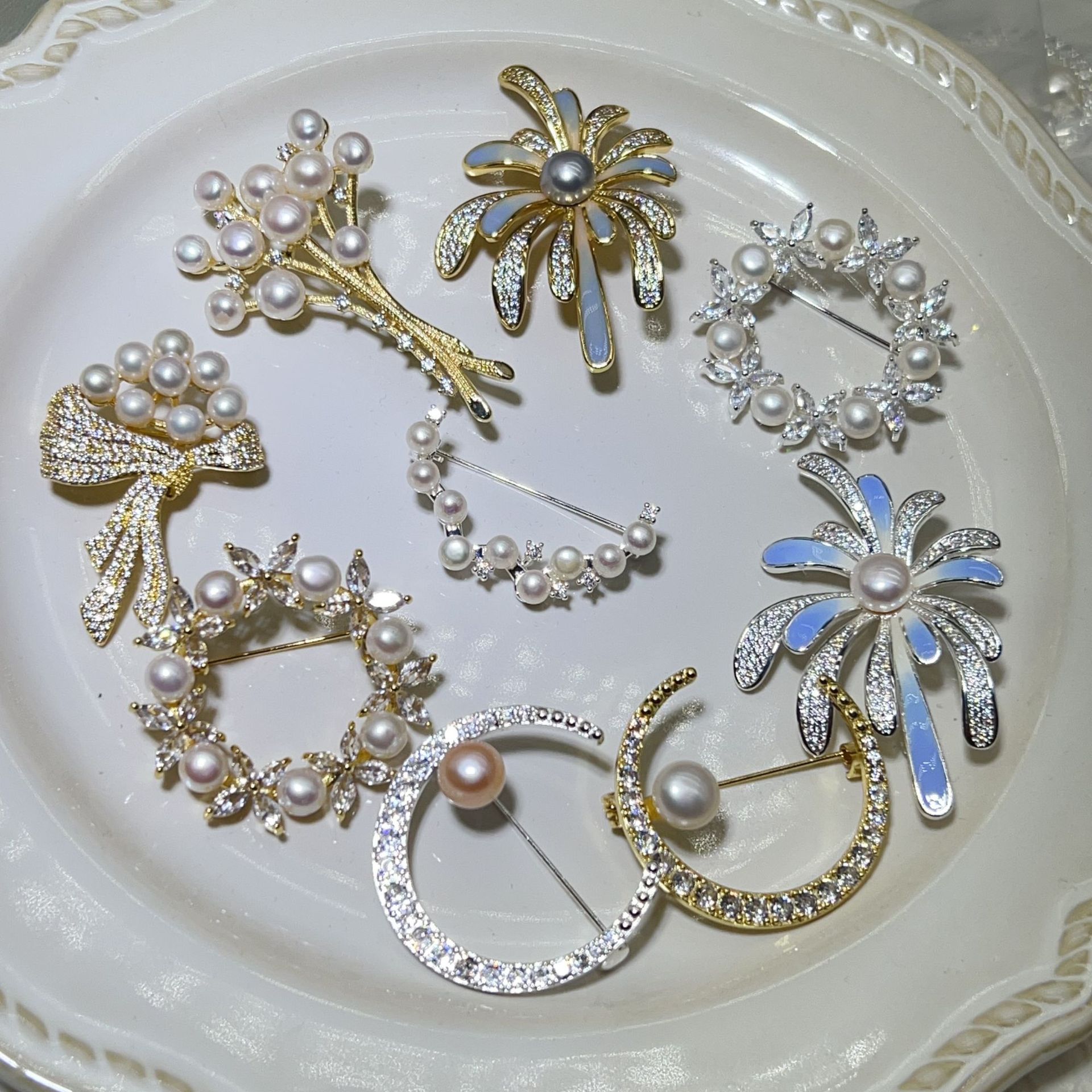 брошь; женщины; цветок; Легкий роскошный стиль