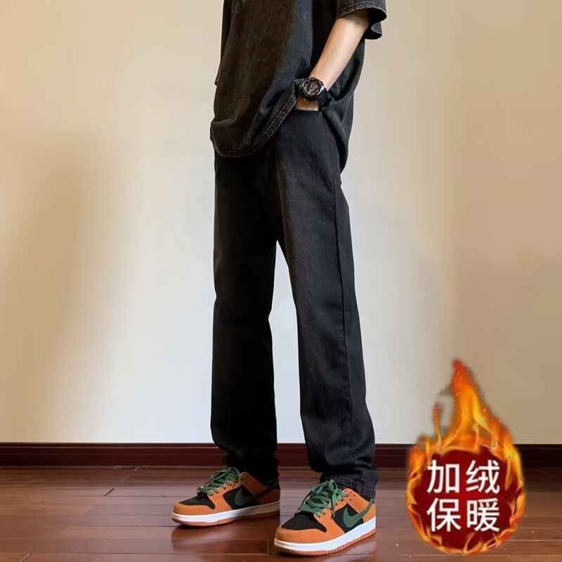 Американские высокие улицы осенью и зимой плюшевые черные джинсы-мачете для мужчин и женщин