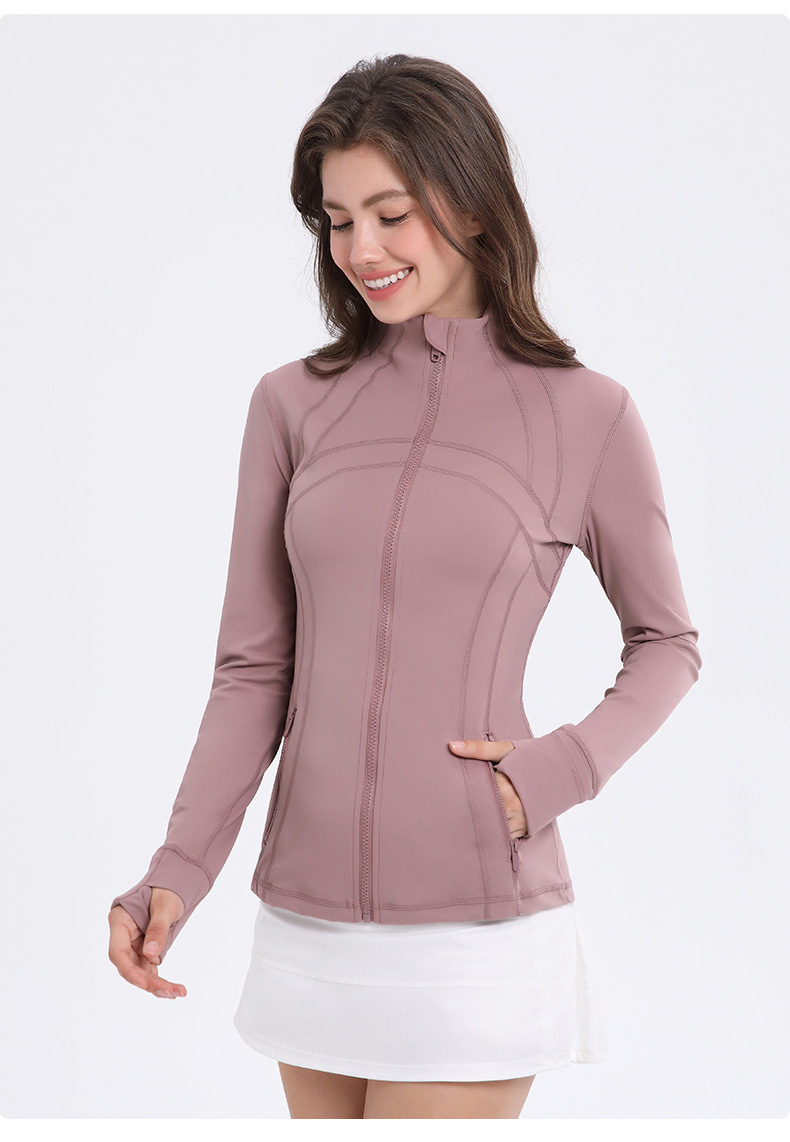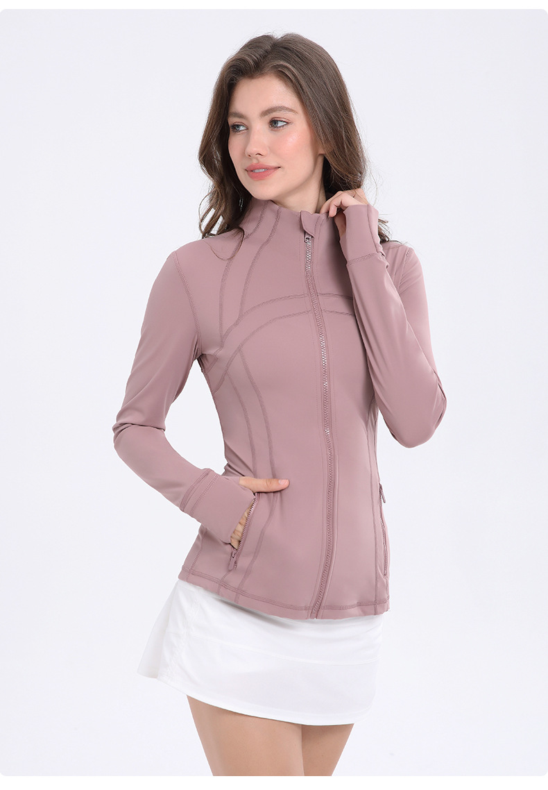 Верхняя одежда Define, новая версия одежды для йоги с воротником-стойкой, женская нейлоновая двусторонняя куртка с начесом, женский спортивный топ на молнии