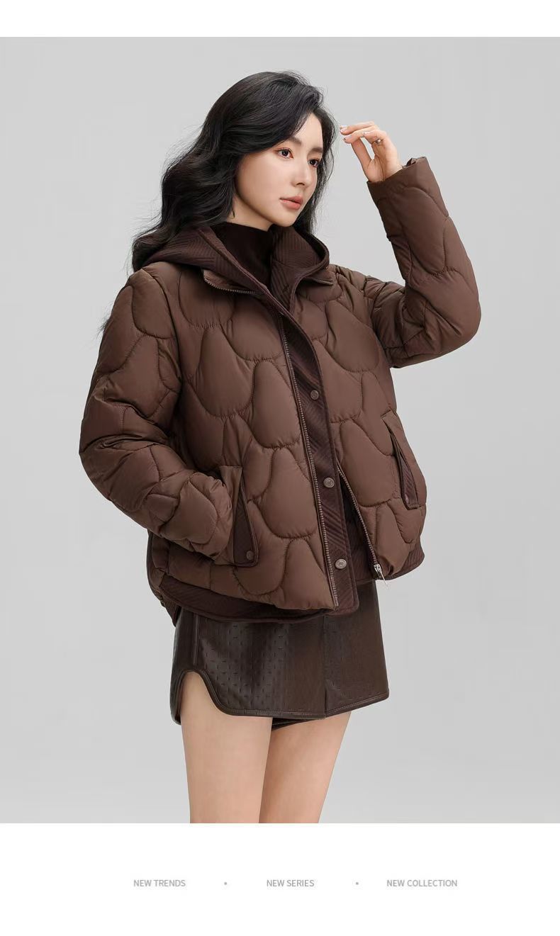 2025: зимняя популярная хлопковая одежда с капюшоном, женская короткая пуховая хлопковая одежда из двух предметов, женские свободные утолщенные хлопковые куртки в западном стиле, модные