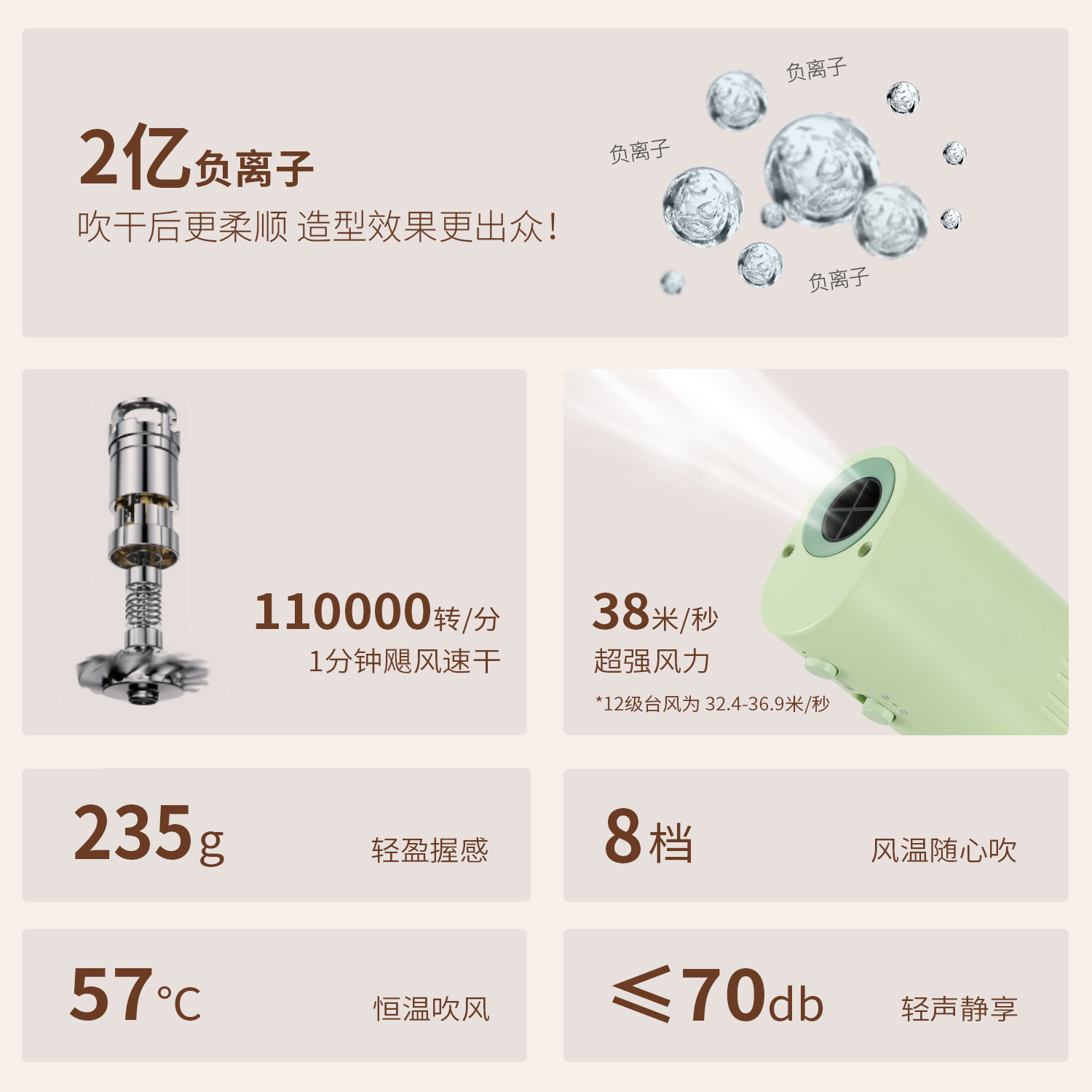 Профессиональный фен для груминга животных с функцией ионизации, бесшумная сушилка для собак и кошек.