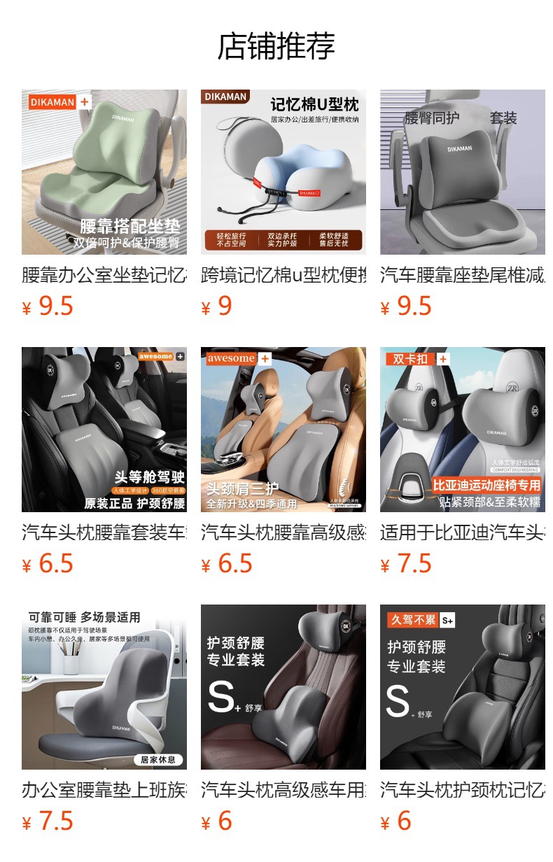 Удобная подушка для шеи; Удобная поддержка талии; Две удобные подушки для шеи.; Удобный подголовник + комплект поясничной опоры.