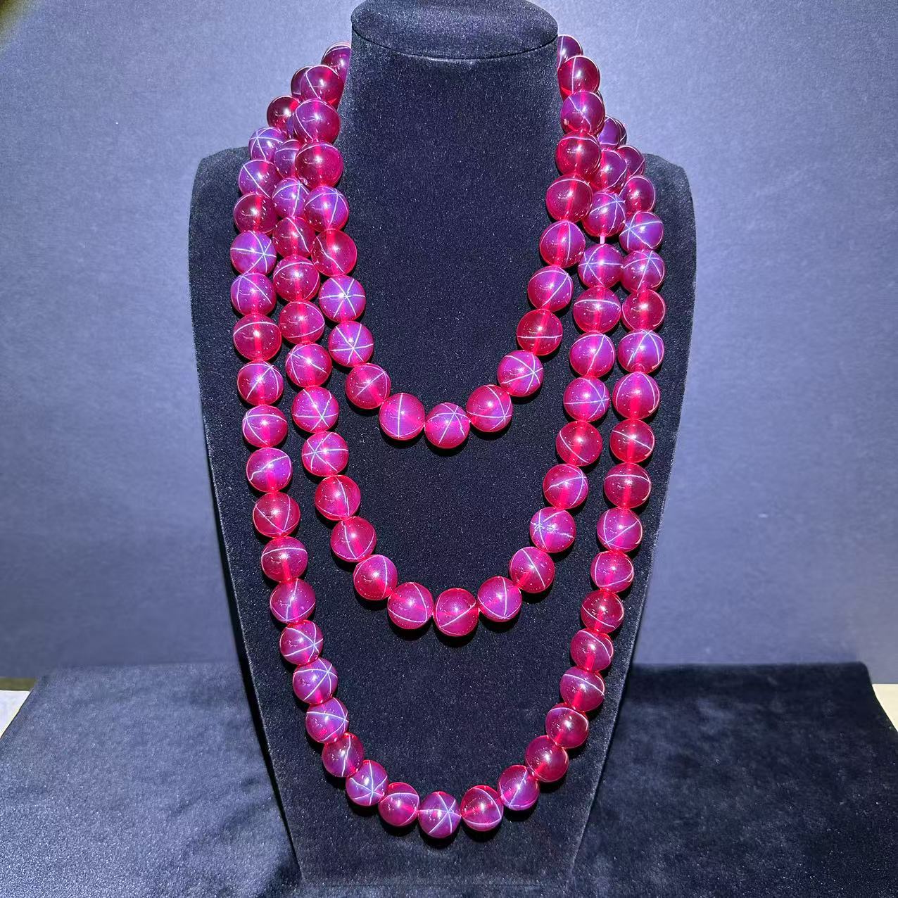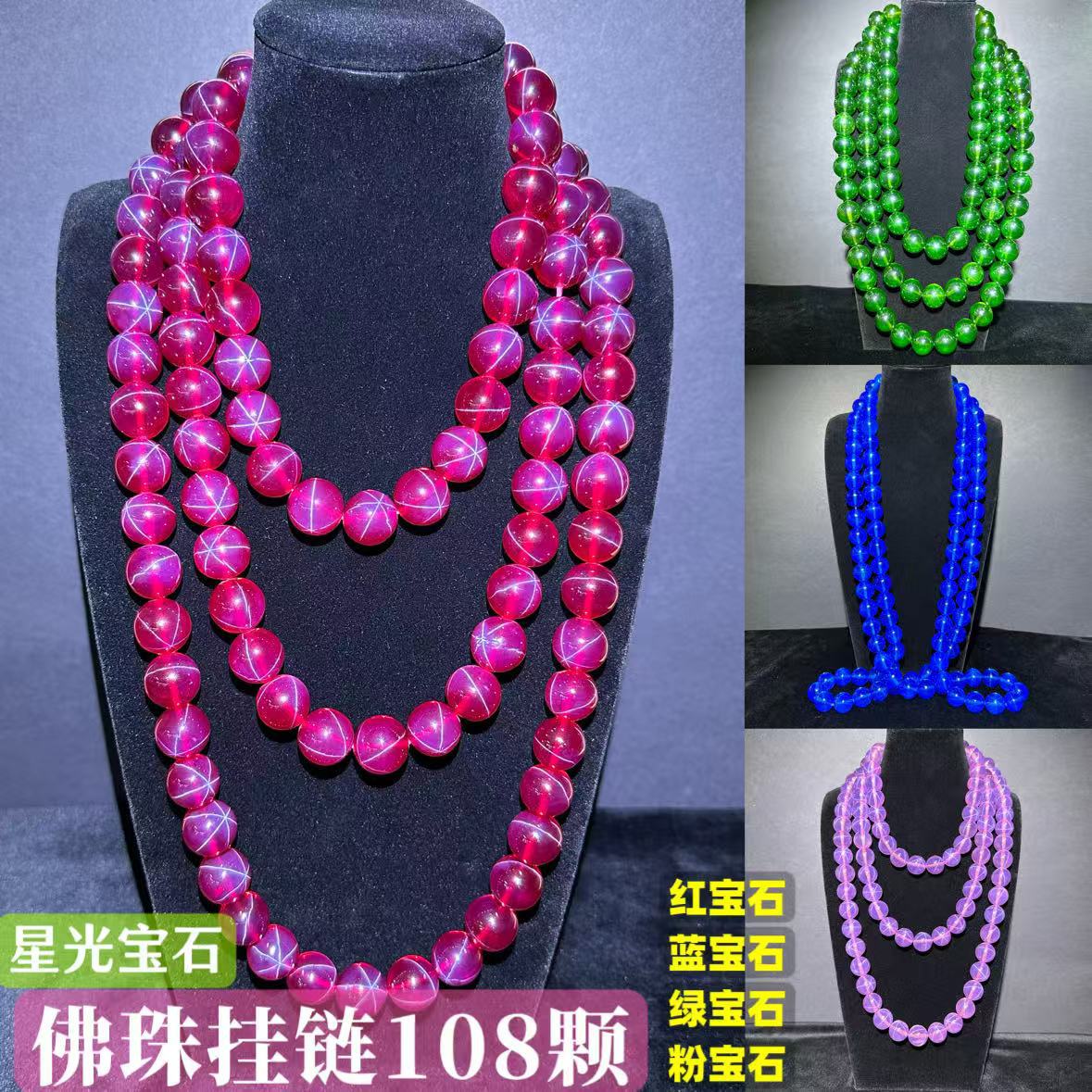 Бусы из 108 шестимерных звезд, рубин, сапфир, изумруд, полный размер