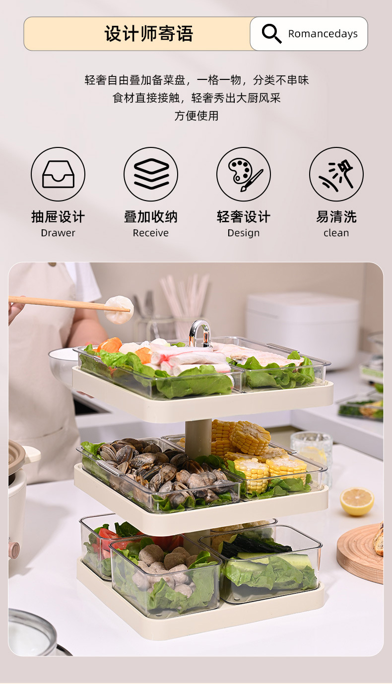 德国多层火锅配菜盘家用厨房备菜神器装鱼蔬菜盘子托盘置物架沥水