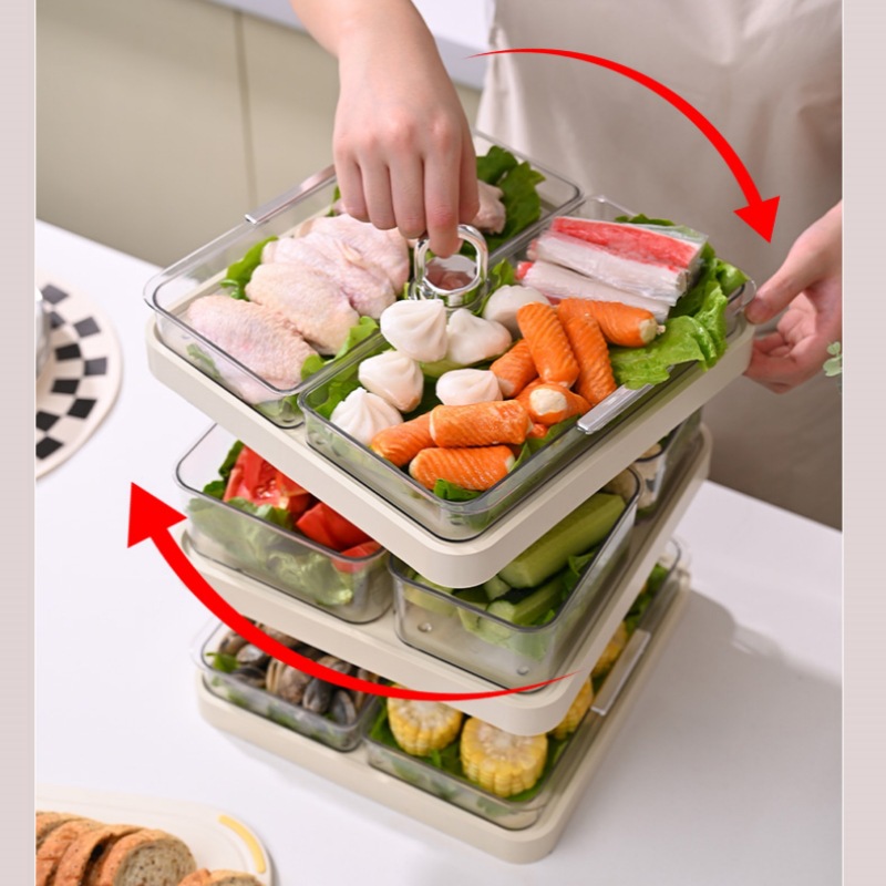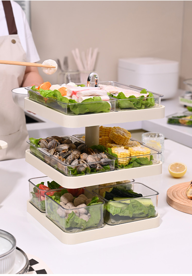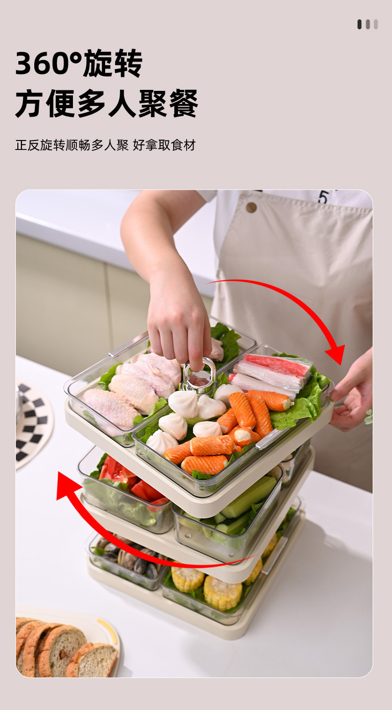 火锅盘配菜盘家用多层分格旋转菜盘子置物架