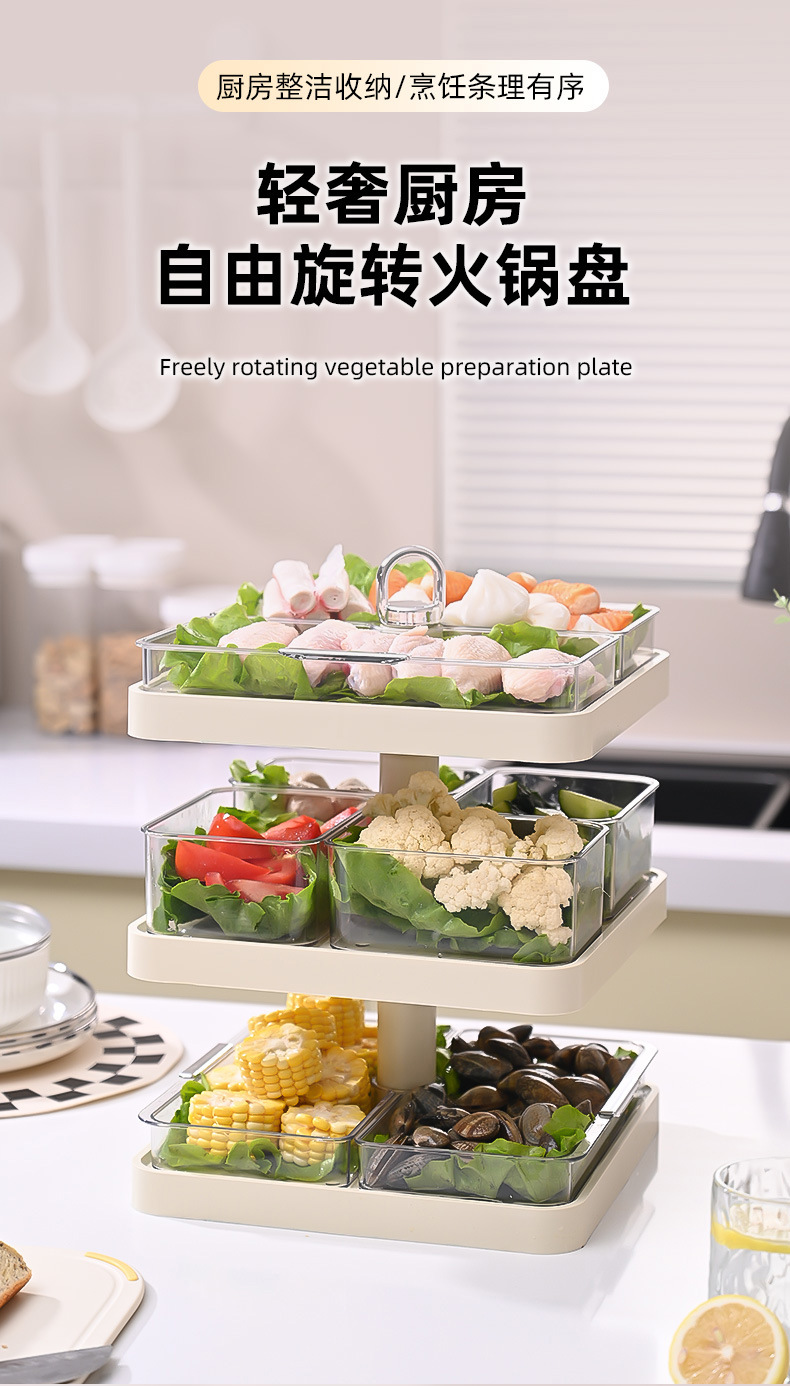 火锅配菜盘可旋转置物架家用多层备菜分格盘多功能菜盘子托盘神器