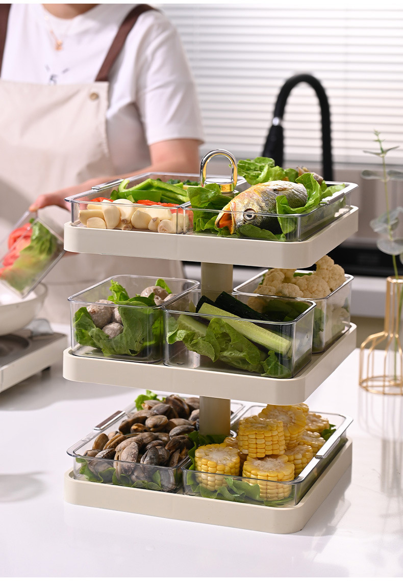 锅配菜盘分格置物架多层备菜神器旋转托盘