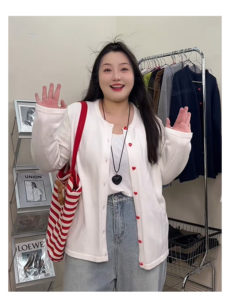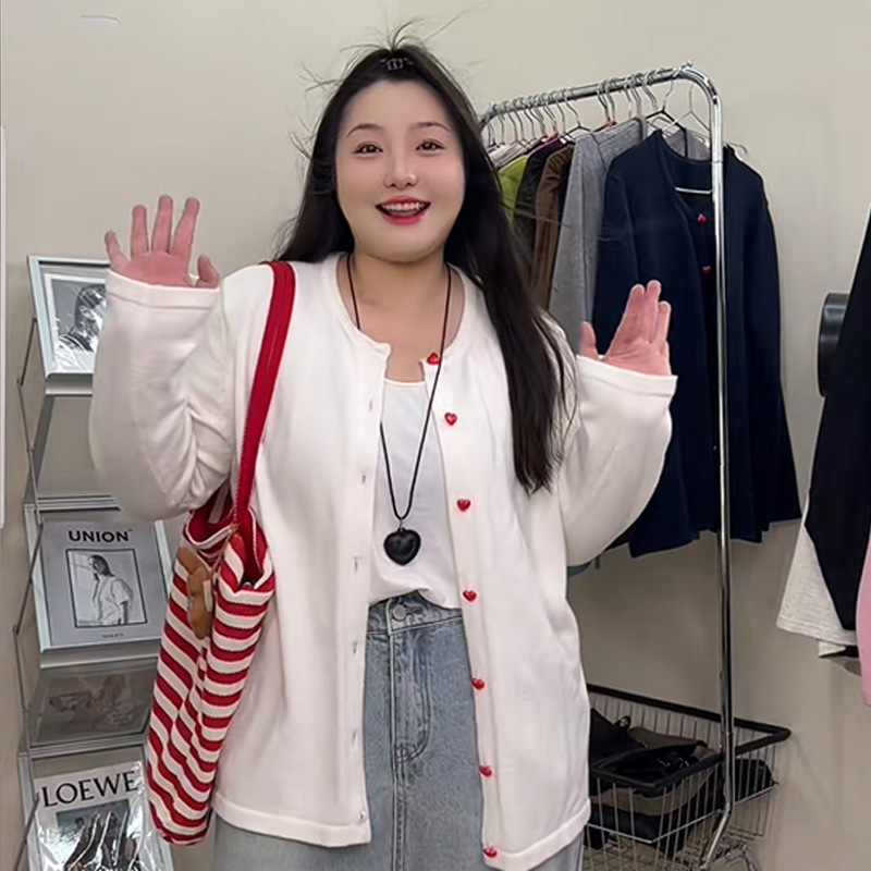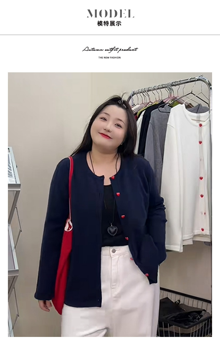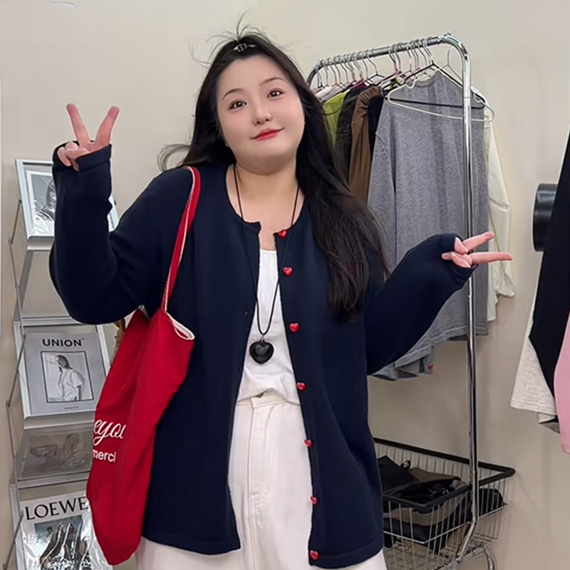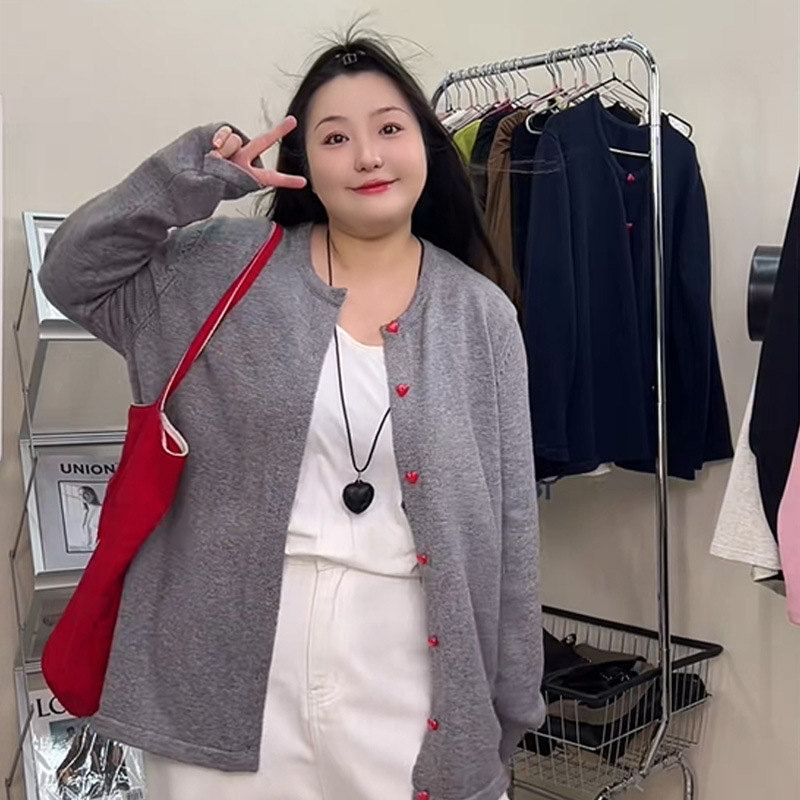 Большой размер женщины новый стиль любви с круглым вырезом минус кардиган пальто осенью 240 кг свитер 9178