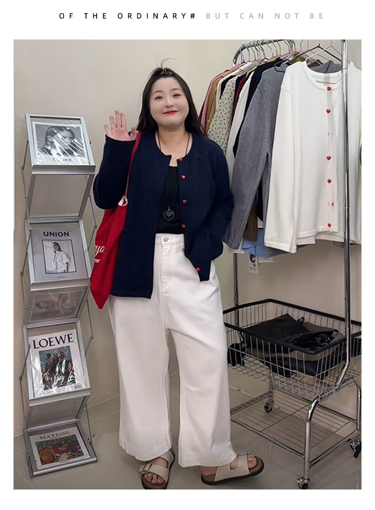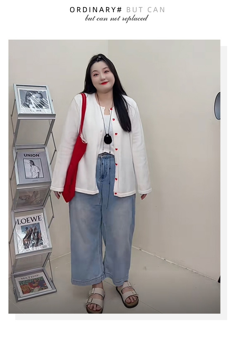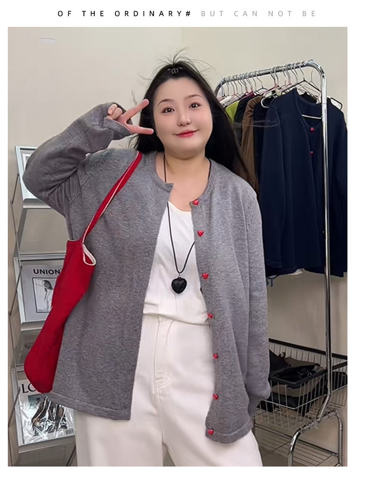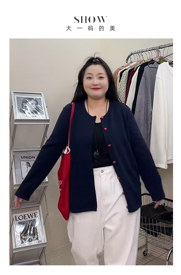Большой размер женщины новый стиль любви с круглым вырезом минус кардиган пальто осенью 240 кг свитер 9178
