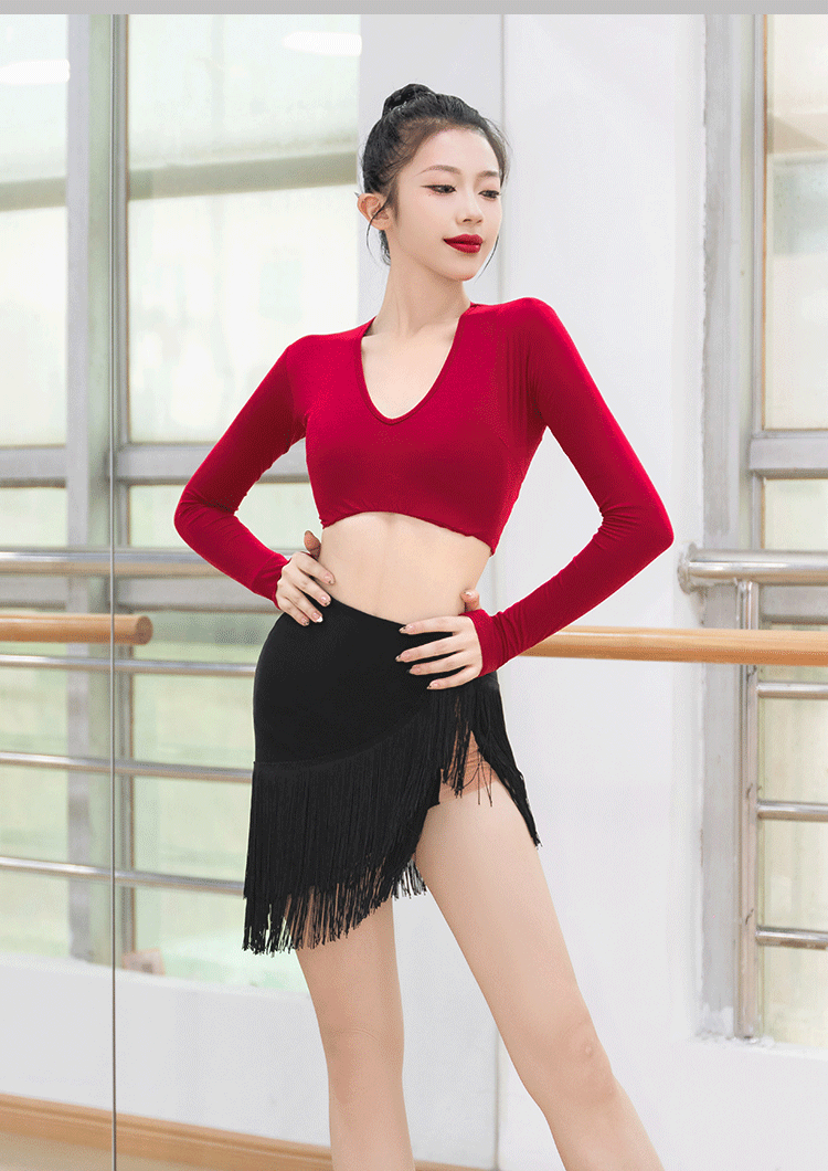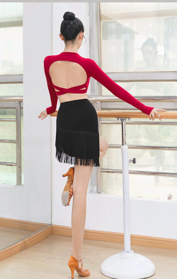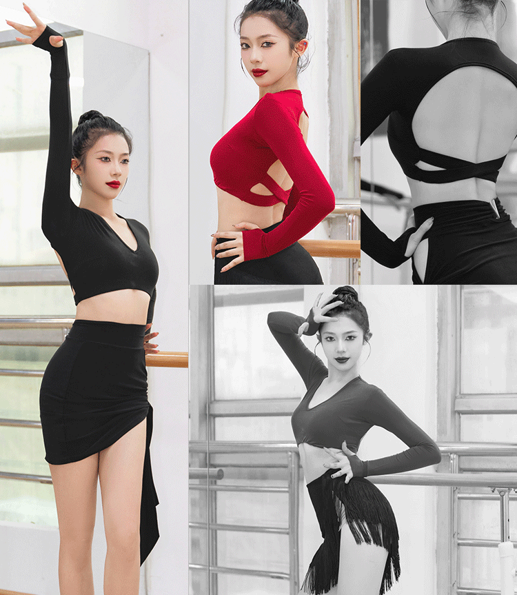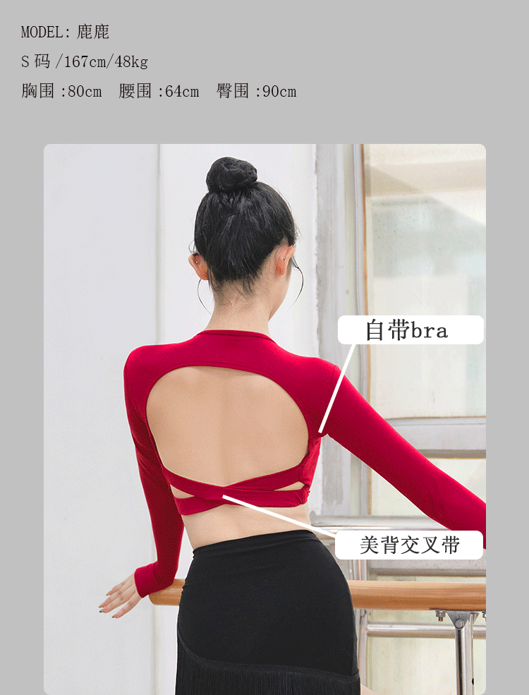 Высококачественный топ с вырезом сзади, повседневная женская тренировочная одежда национального стандарта для латинских танцев с длинными рукавами и хлопковой грудью