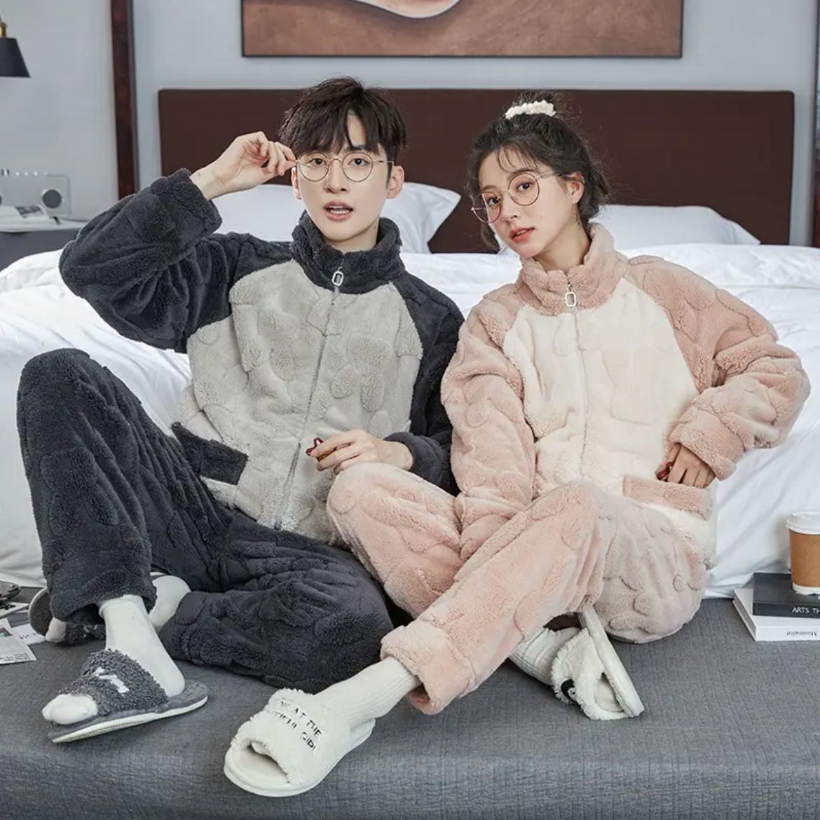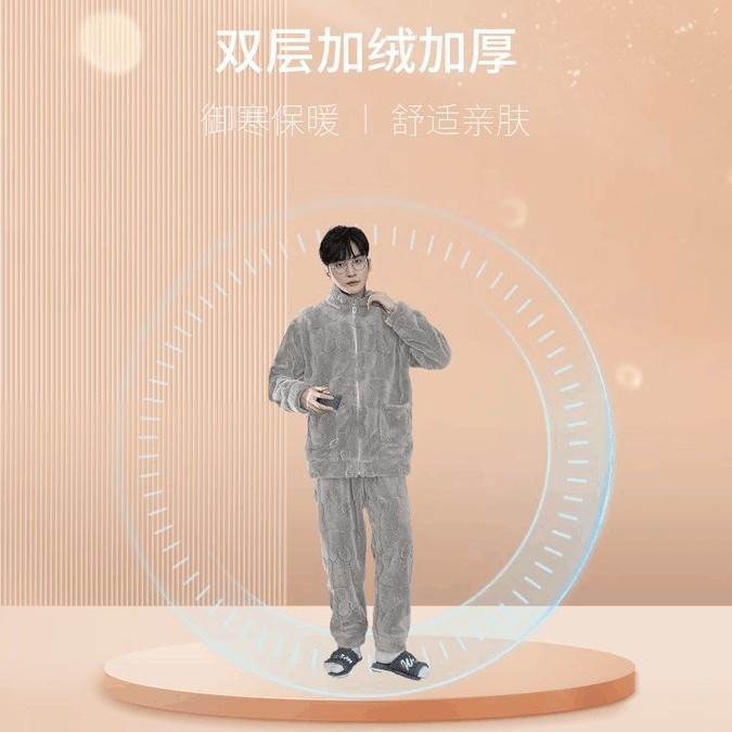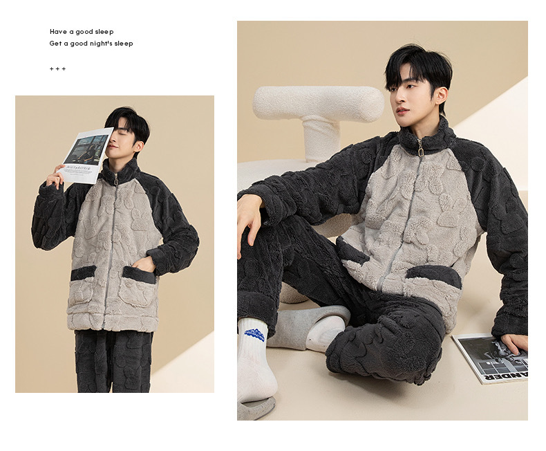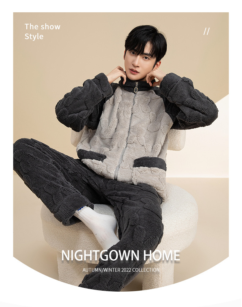 Мужская пижама коралловый бархат осенняя зима утолщение молнии плюс бархат с длинными рукавами теплая фланелевая домашняя одежда набор зимой