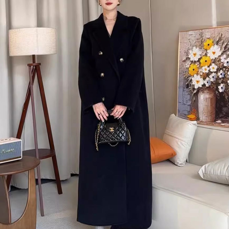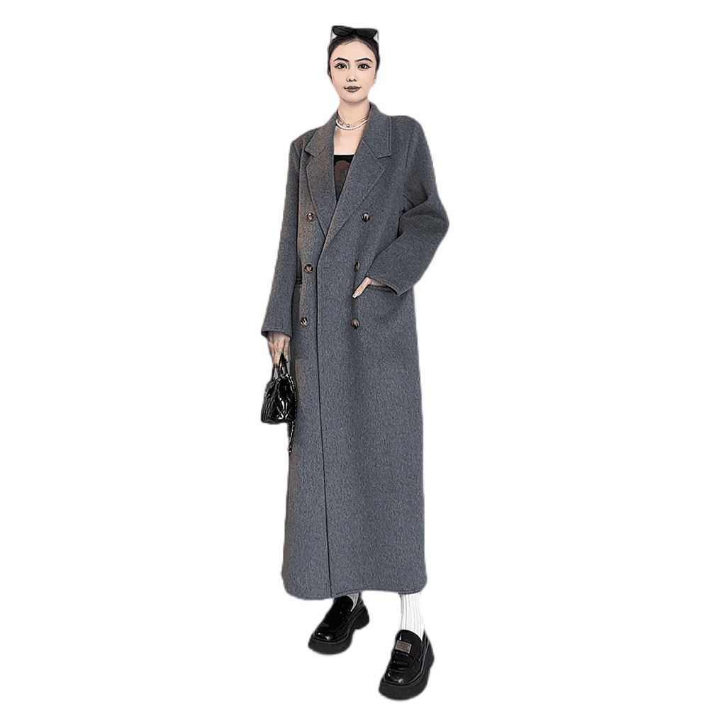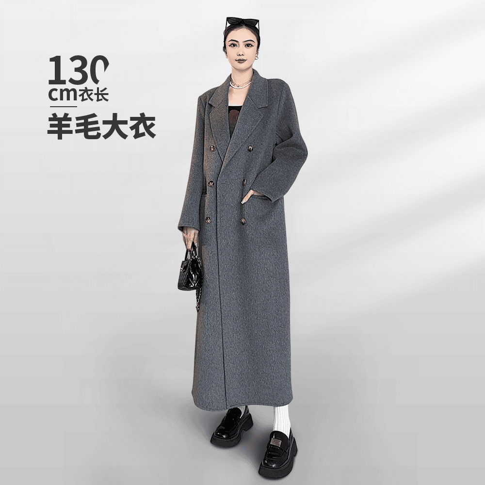 Спот 6659 больших размеров женские темно-серые шерстяные пальто 2024 новые осень-зима высокого класса жирный мм длинное шерстяное пальто