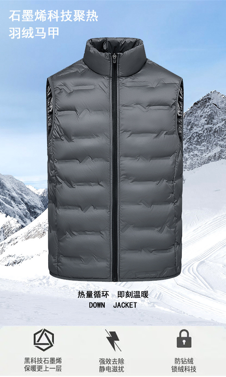 2024 новый графен нагревается, тепло, тонкий пуховый жилет мужской спортивный плечо пара 85 белый утка жилет