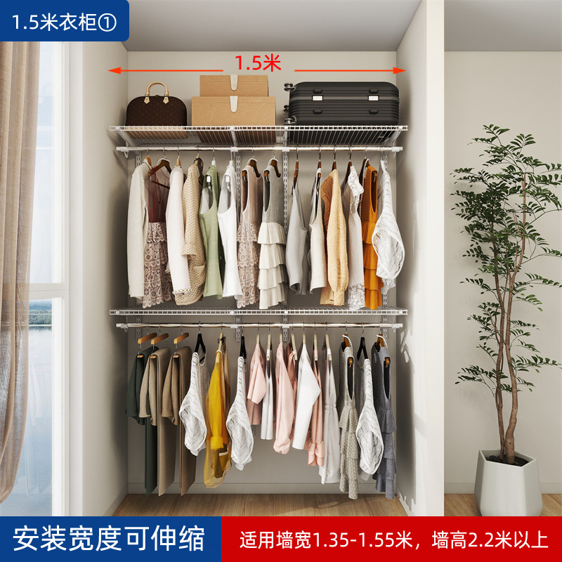 Металлический шкаф-гардероб Qiao Jingling открытого типа, простой, с зоной для подвешивания одежды, настенный, для самостоятельной сборки, аксессуары для самостоятельной сборки, настенная гардеробная для домашнего использования