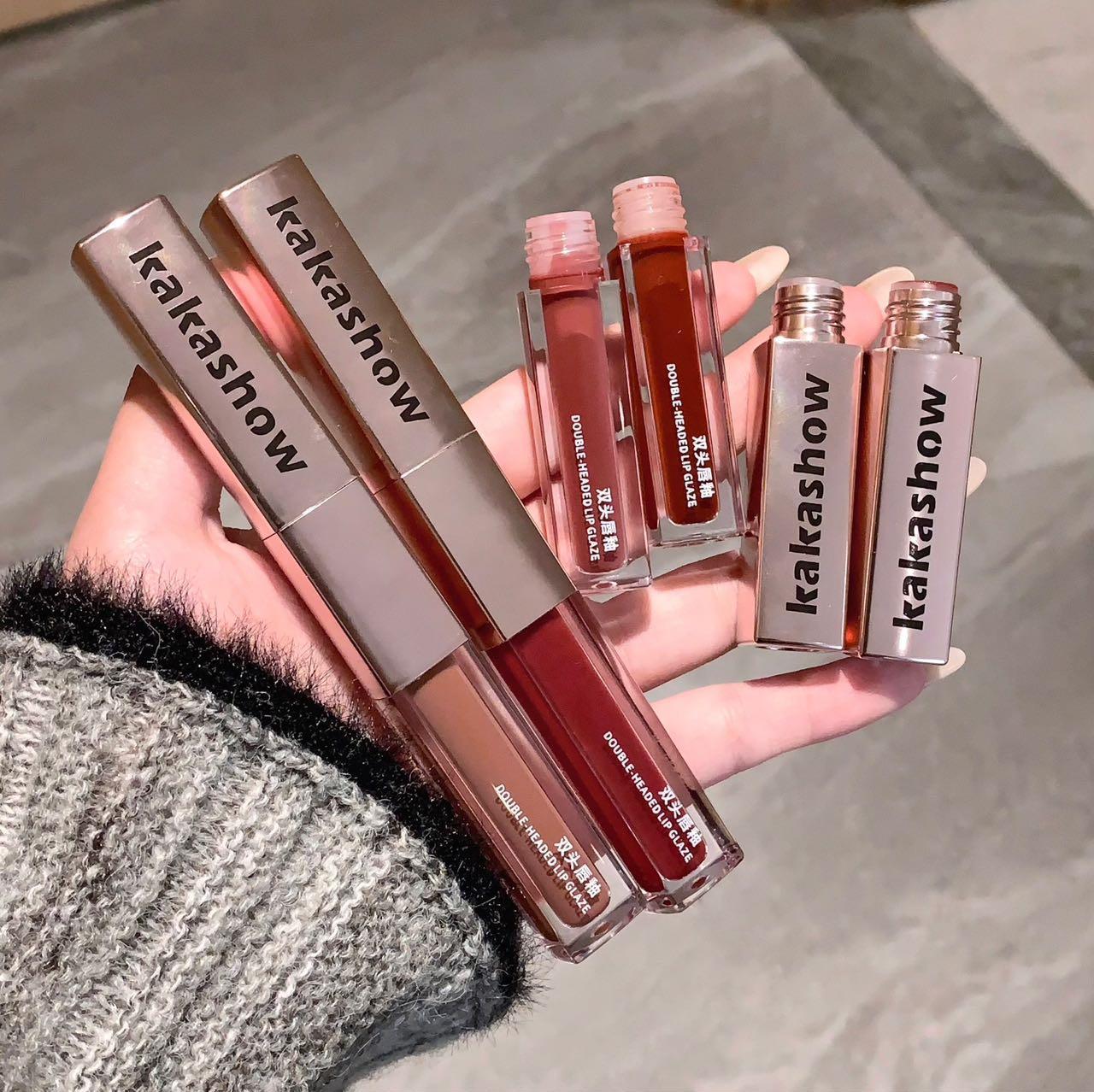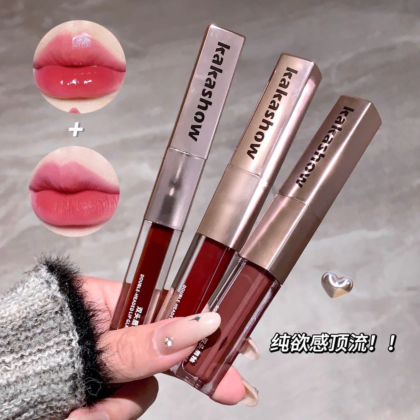 Kakashow с макияжем с двумя головами губная глазурь матовая зеркальная двойная текстура губная помада нежная шелковистая и не застрявленная, белая губная глазурь