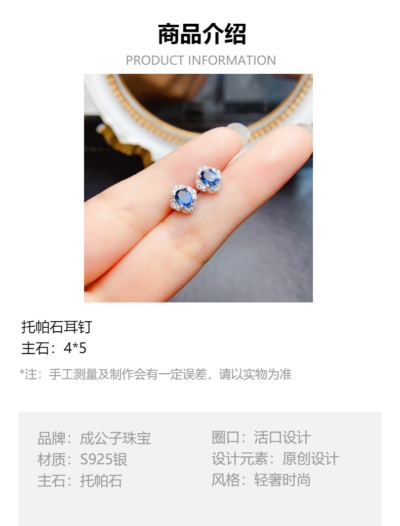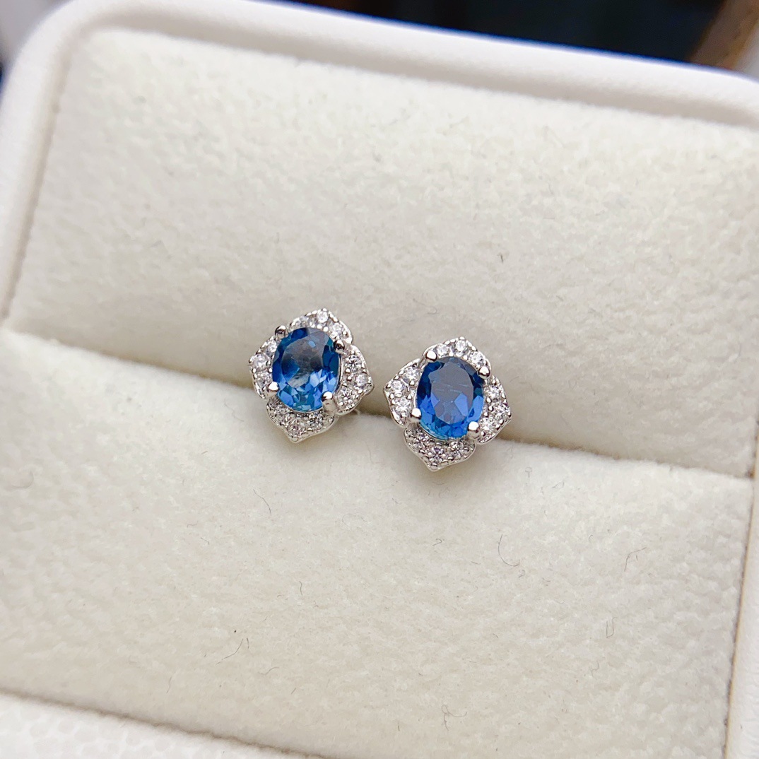 Новый натуральный топазовый серьги S925 Серебряный инкрустированный основной камень 4*5 мм