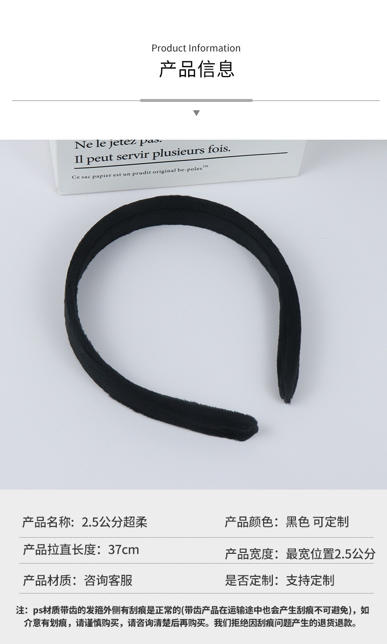 Черный фланелевый рукав для волос, супер мягкая ткань, широкий беззубый головный обруч, полуфабрикатный материал для волос, 2.5 супер мягкий 37cm