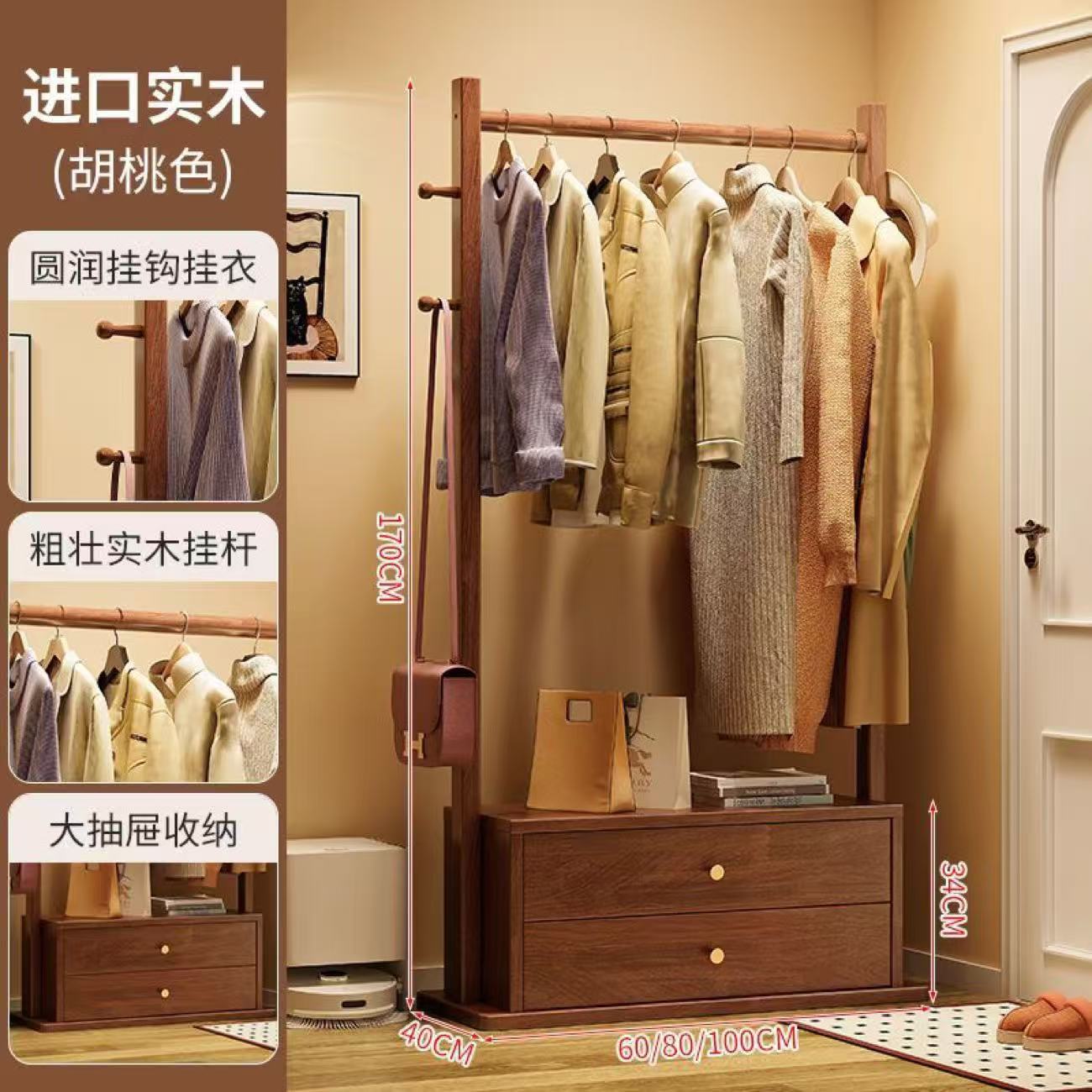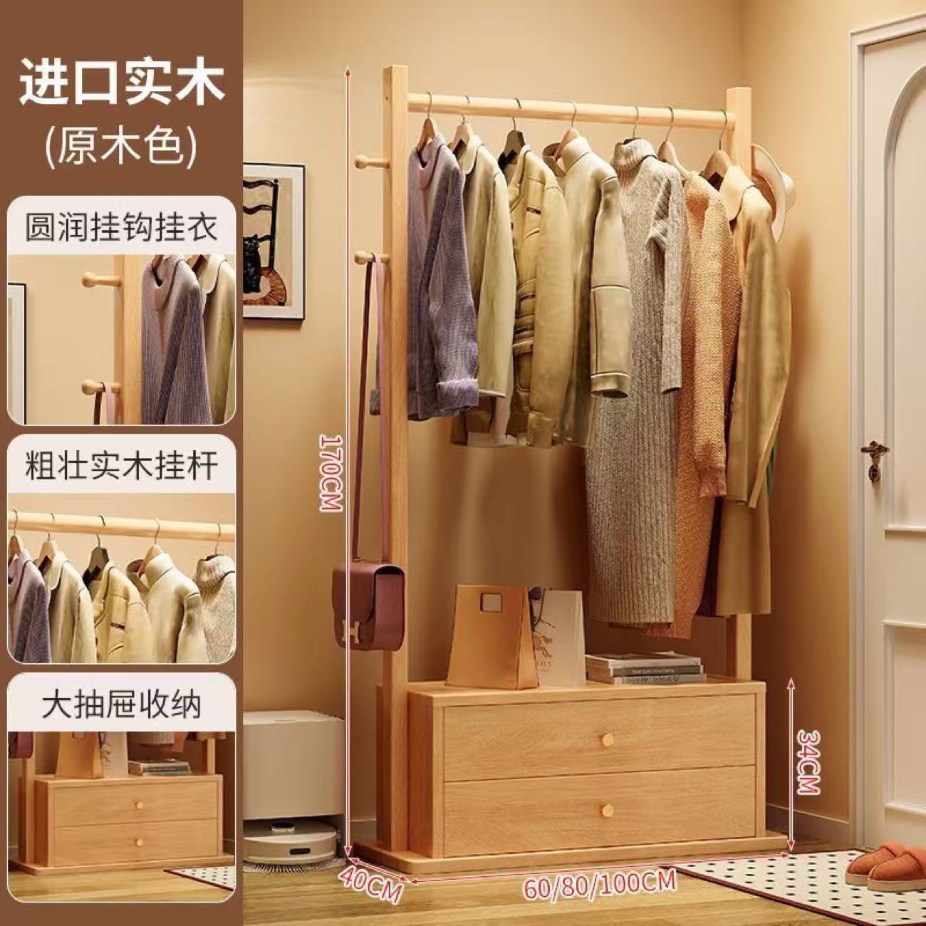 Напольная вешалка для одежды Run Guangsheng 2025 из массива дерева, стеллаж для хранения в гостиной, комод для дома, напольный стеллаж для спальни