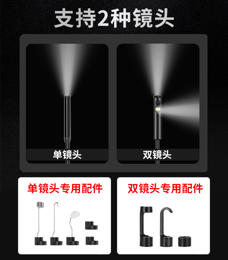 2025款,新品手持款工业内窥镜上市,采用4.3寸IPS全视角硬屏,支持1-100米线长,8mm超清1080P摄像头,180°画面旋转,黑白画面切换,镜头搭配8个超量LED灯珠,1米500套起仅需65元,新品限时促销。
