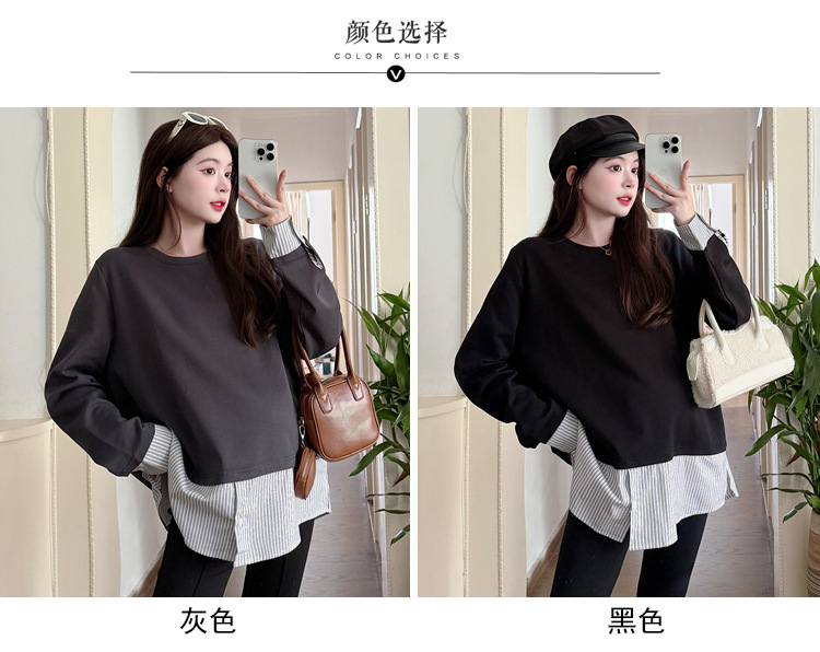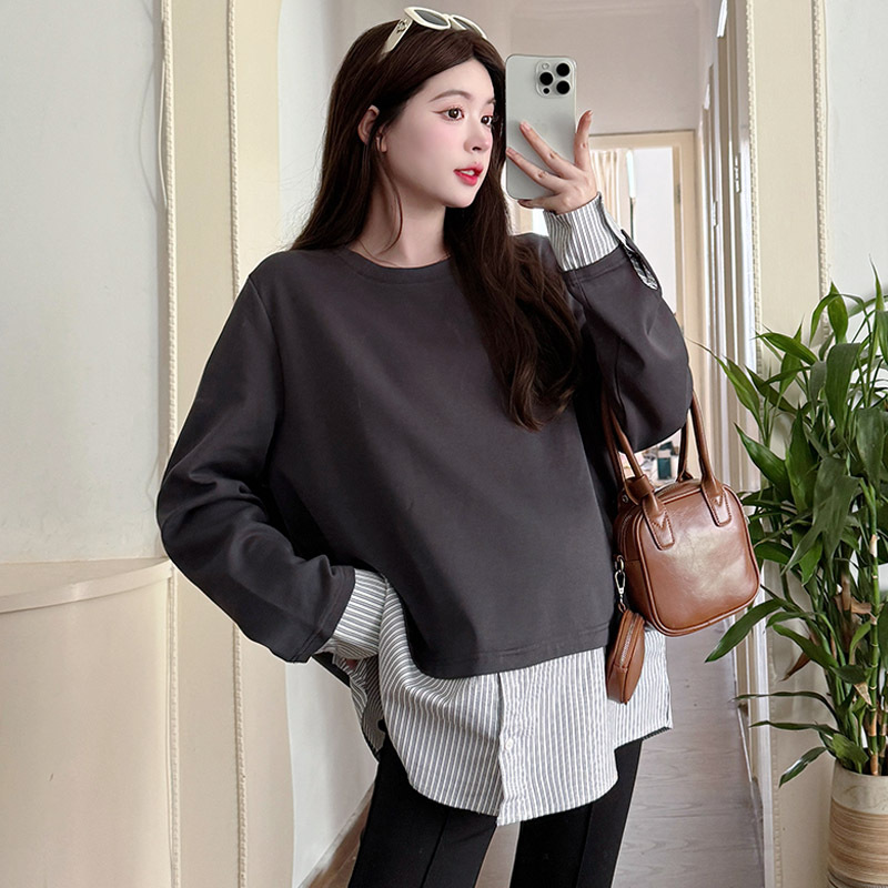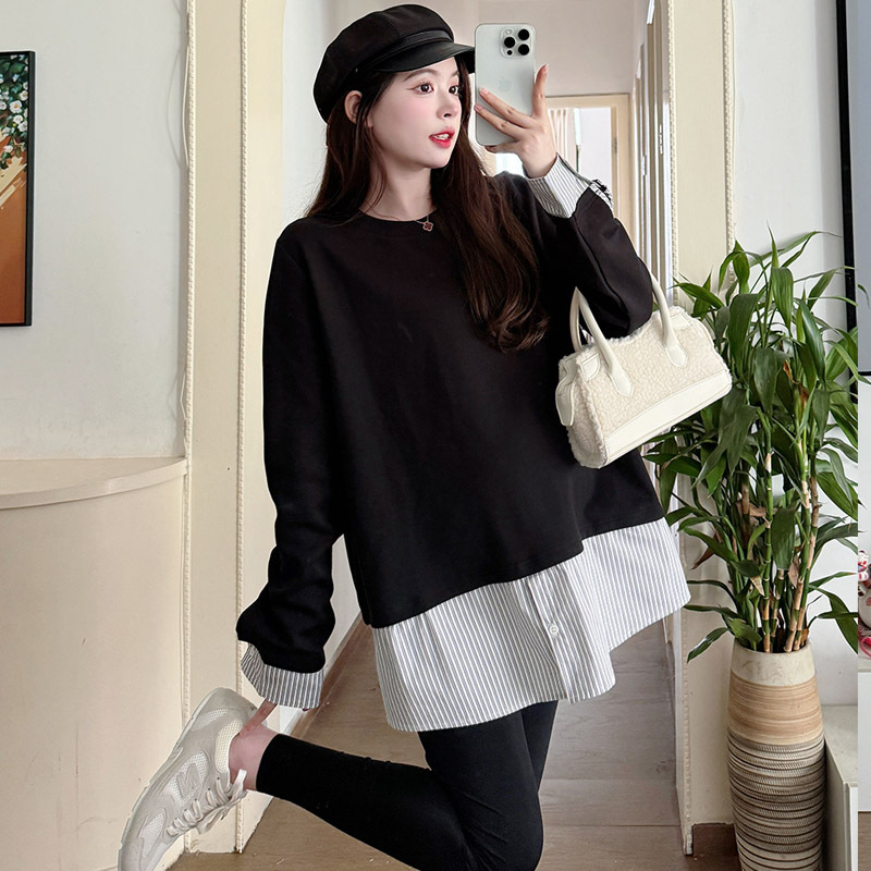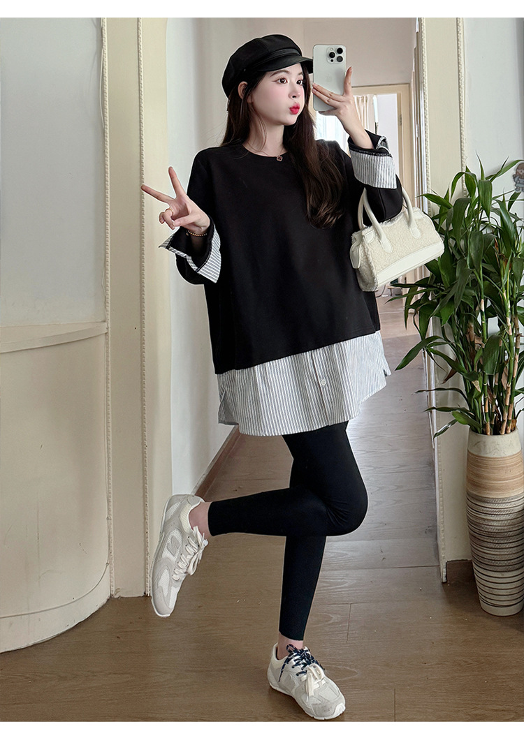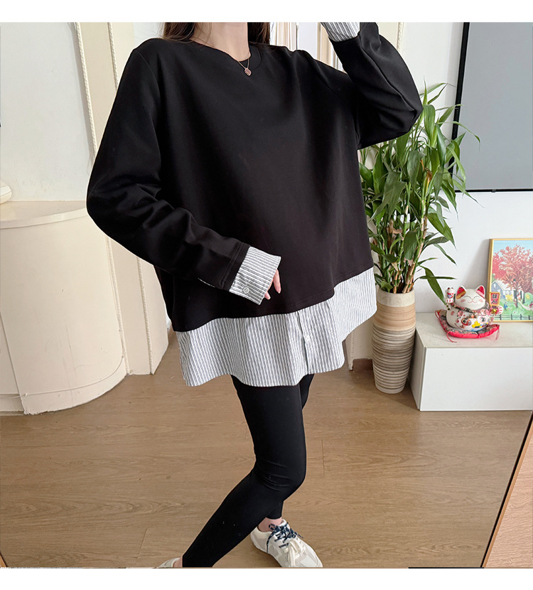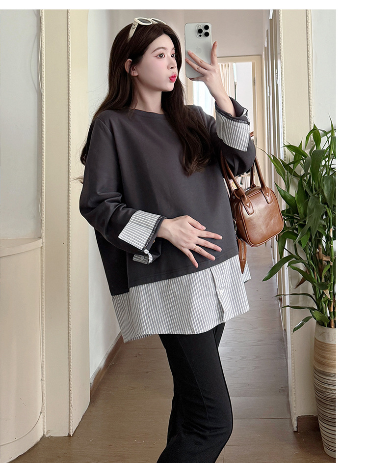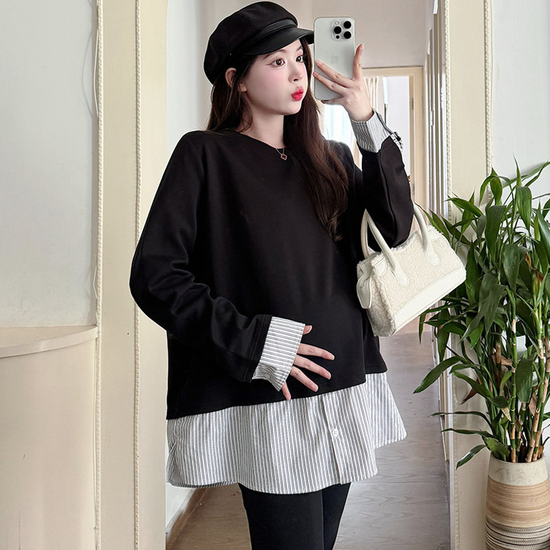 Одежда для беременных Осенняя фальшивая две части в полоску с длинными рукавами топ свободный большой размер тощий свиток осенняя беременная одежда