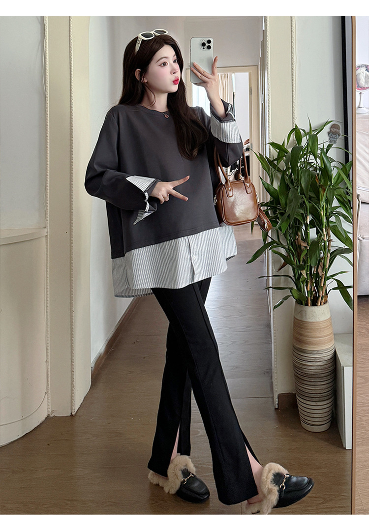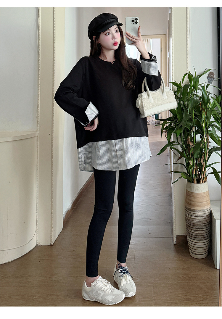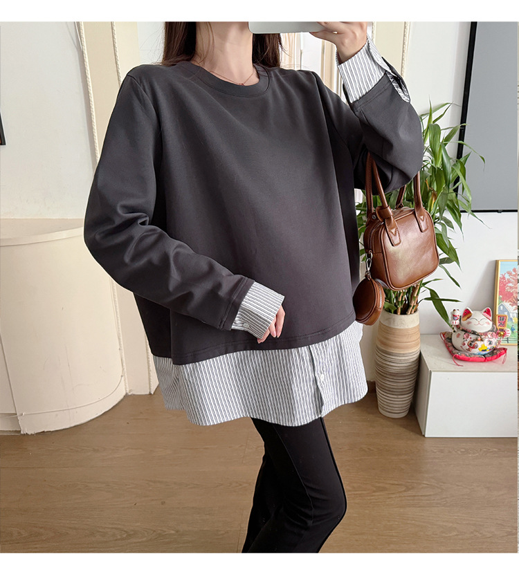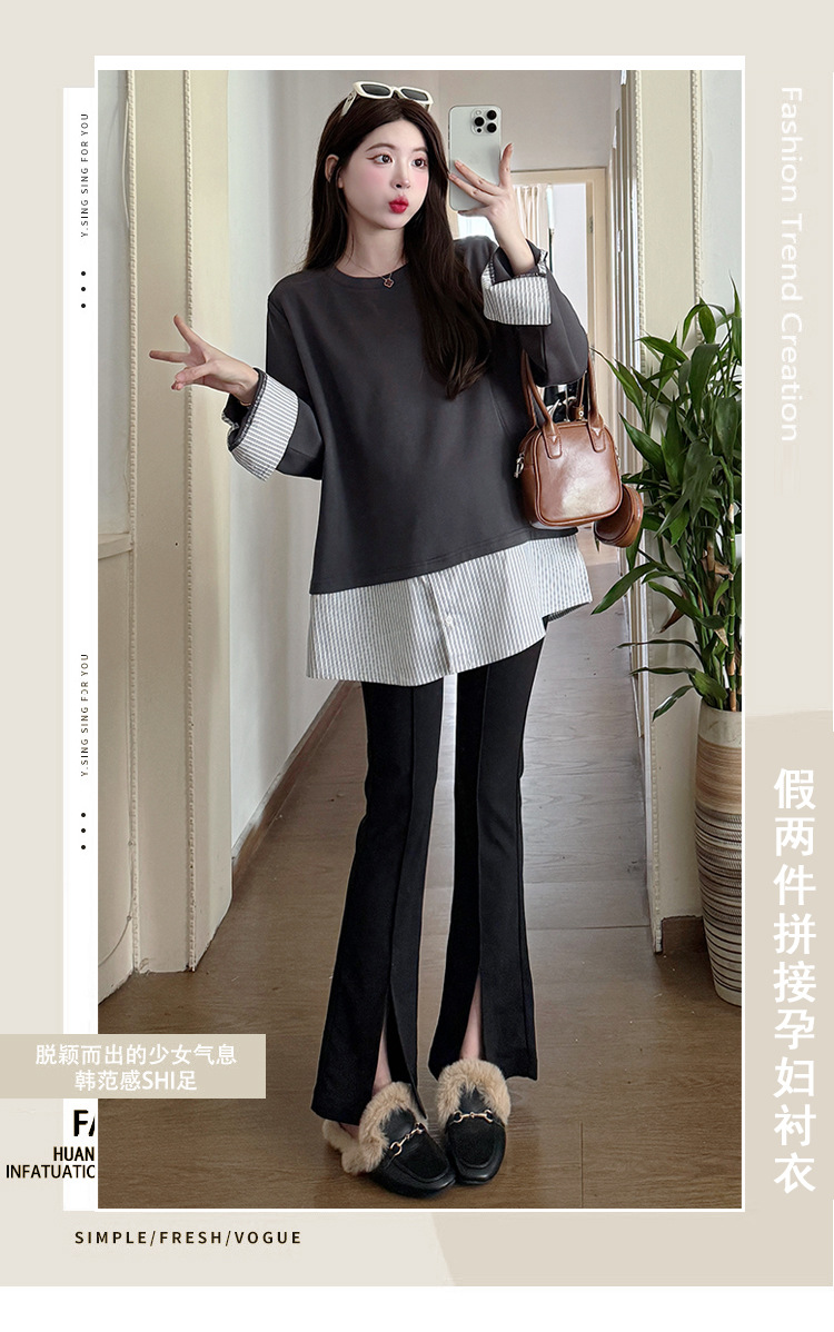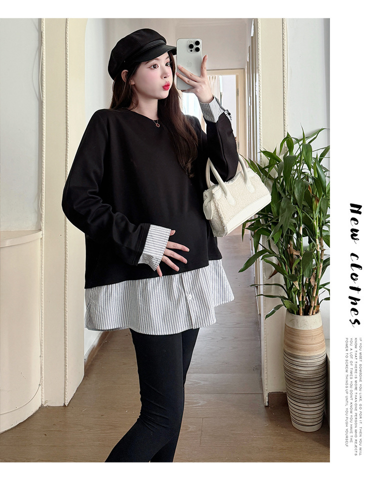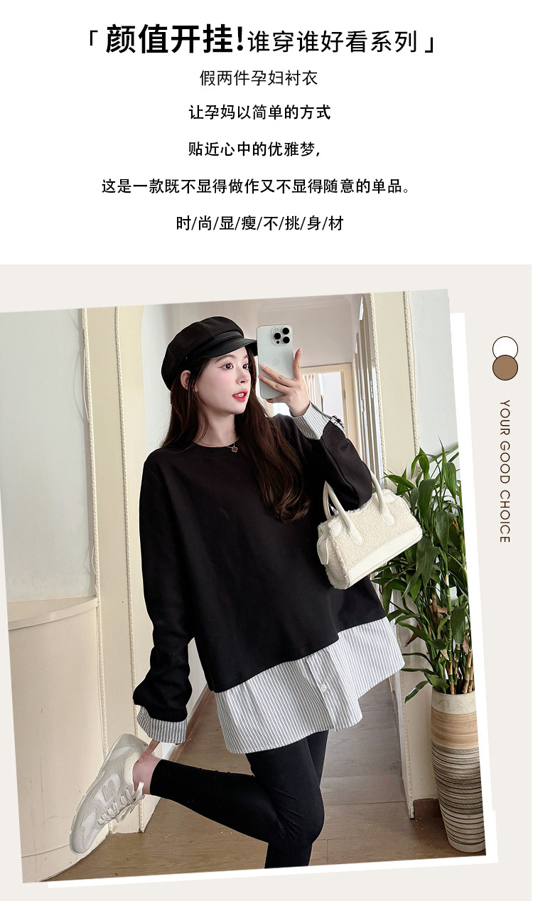 Одежда для беременных Осенняя фальшивая две части в полоску с длинными рукавами топ свободный большой размер тощий свиток осенняя беременная одежда