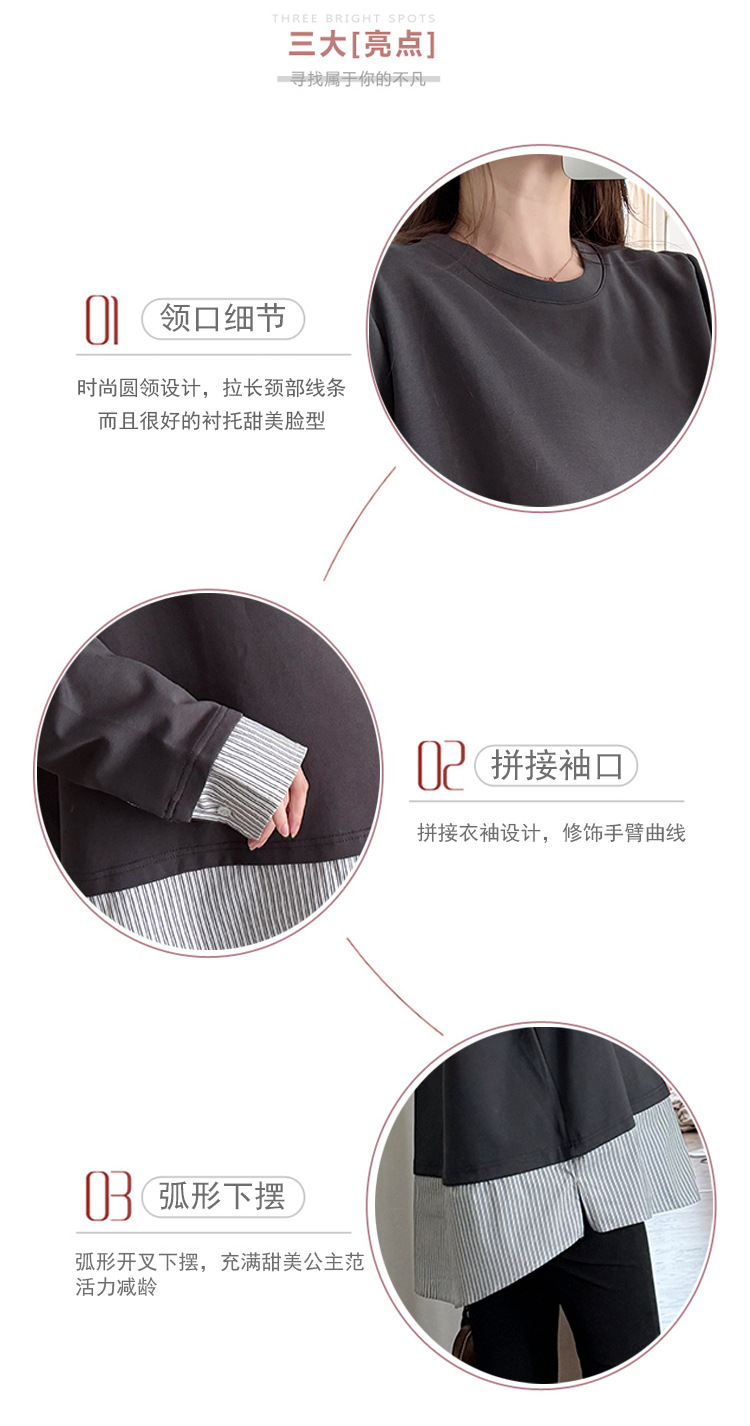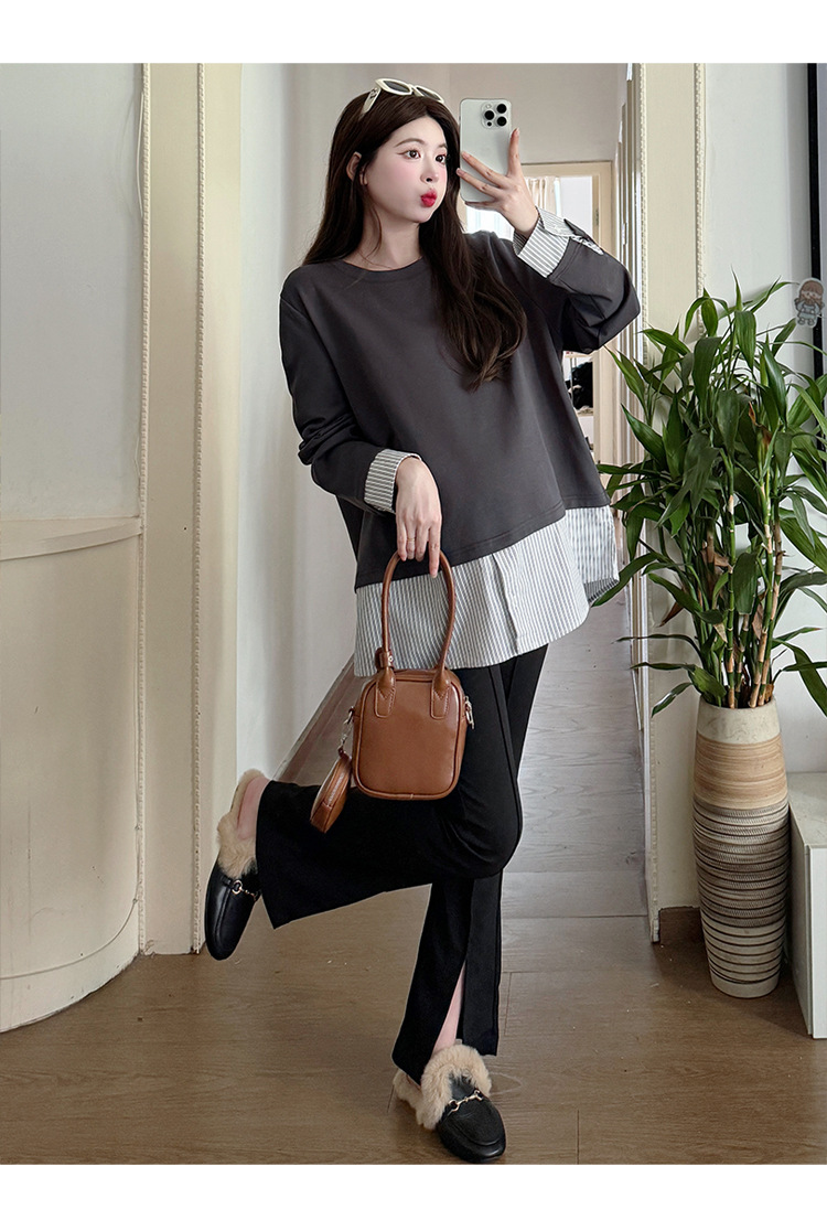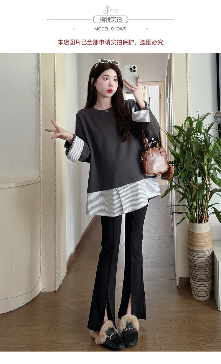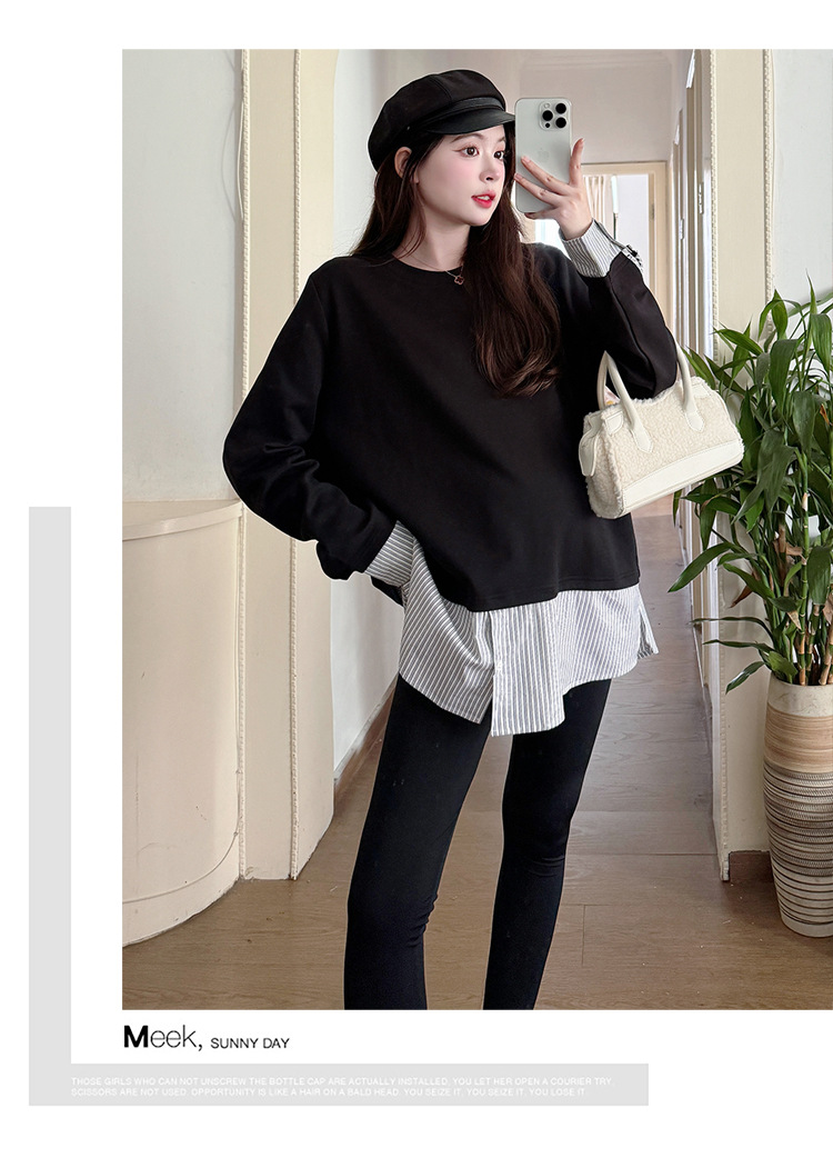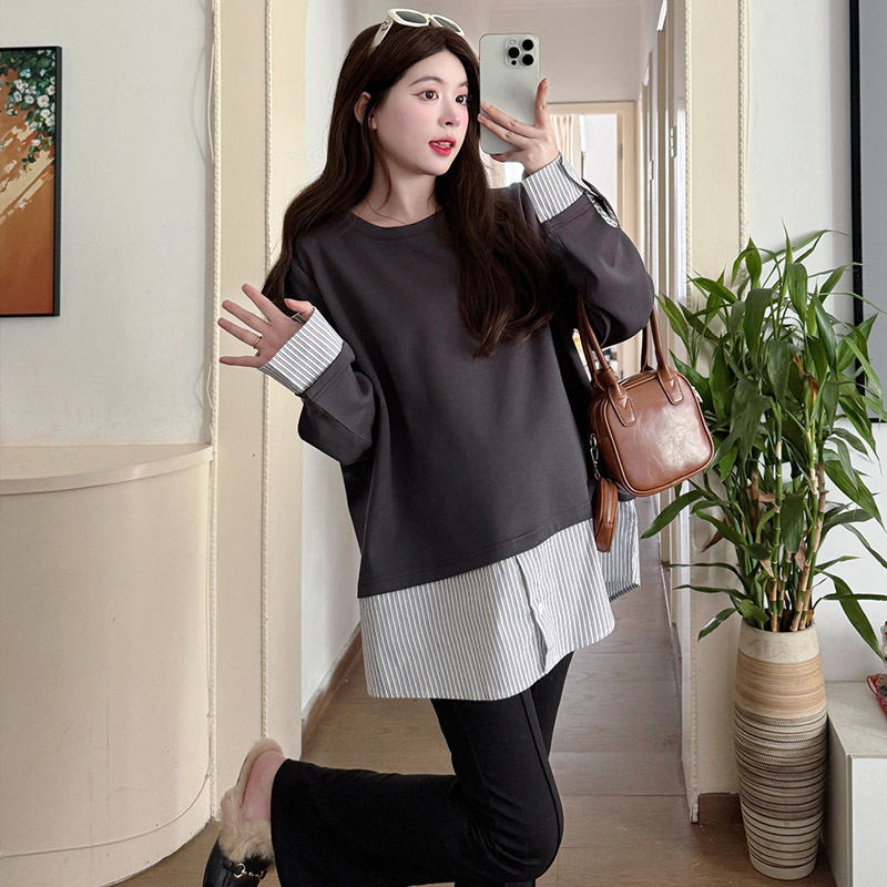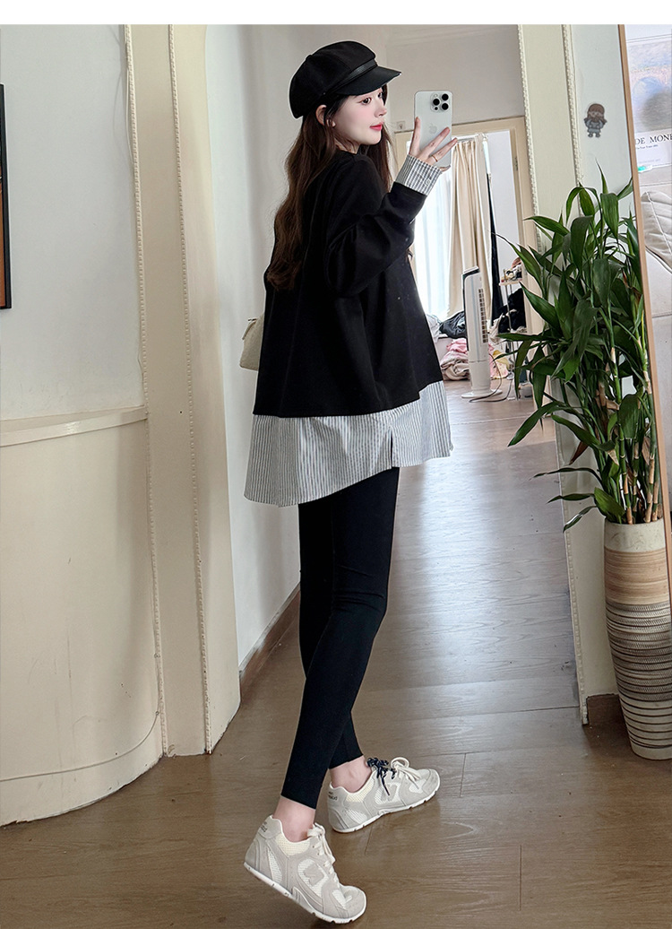 Одежда для беременных Осенняя фальшивая две части в полоску с длинными рукавами топ свободный большой размер тощий свиток осенняя беременная одежда