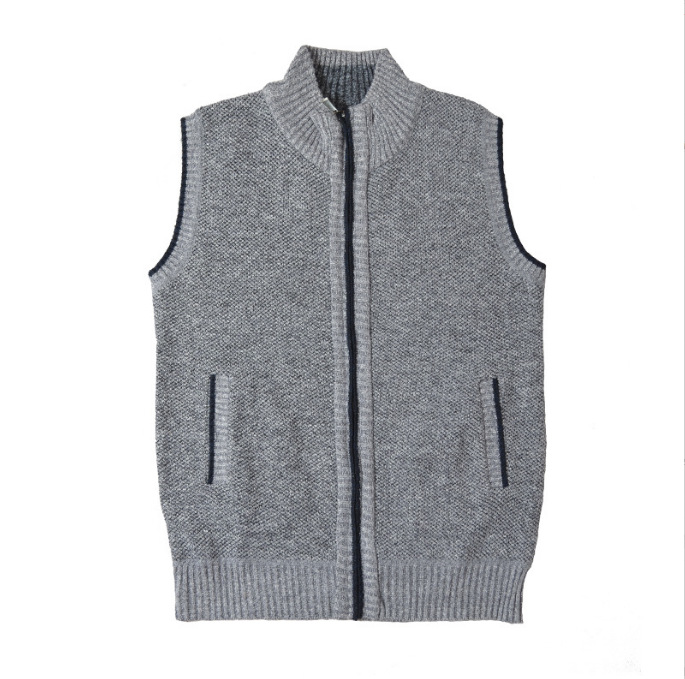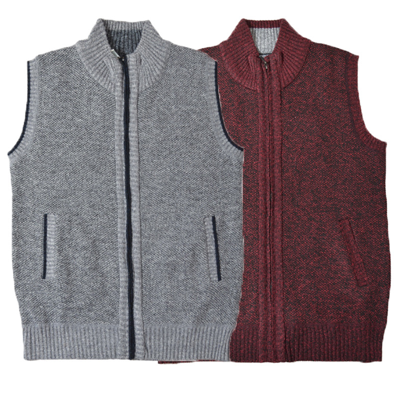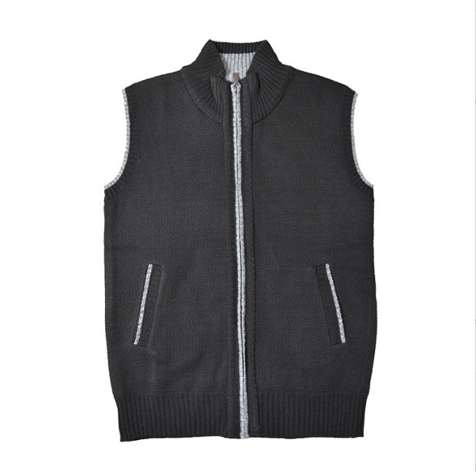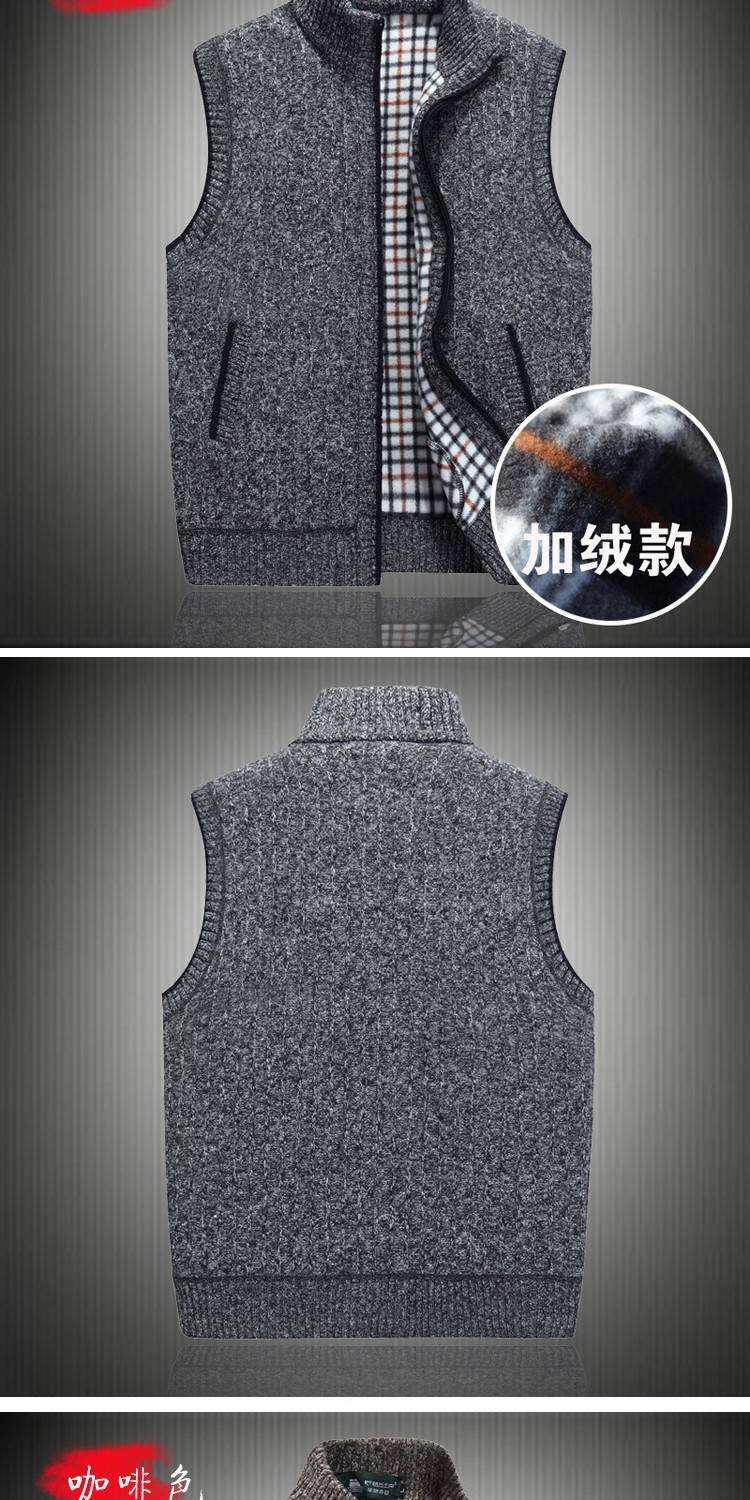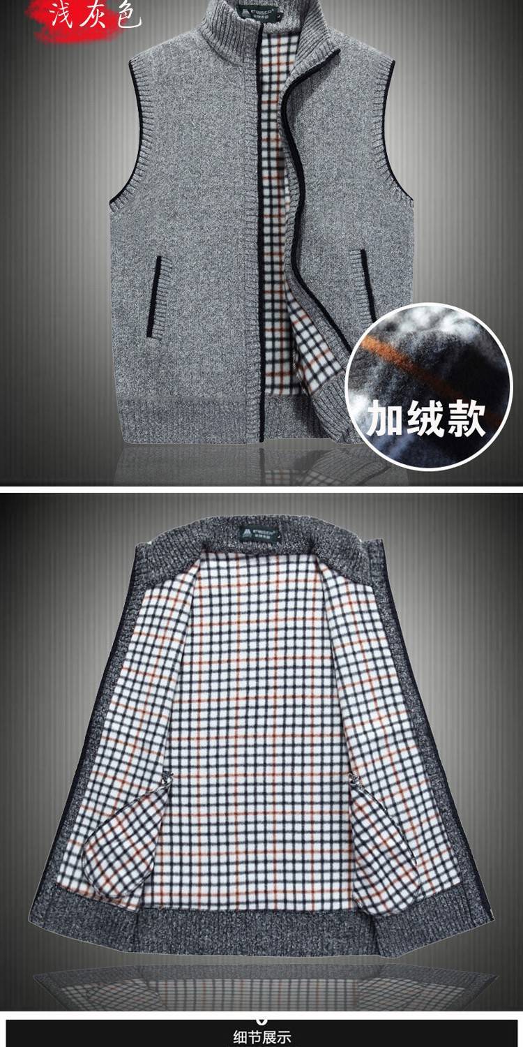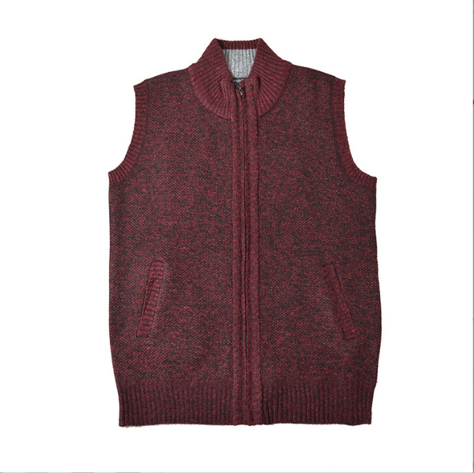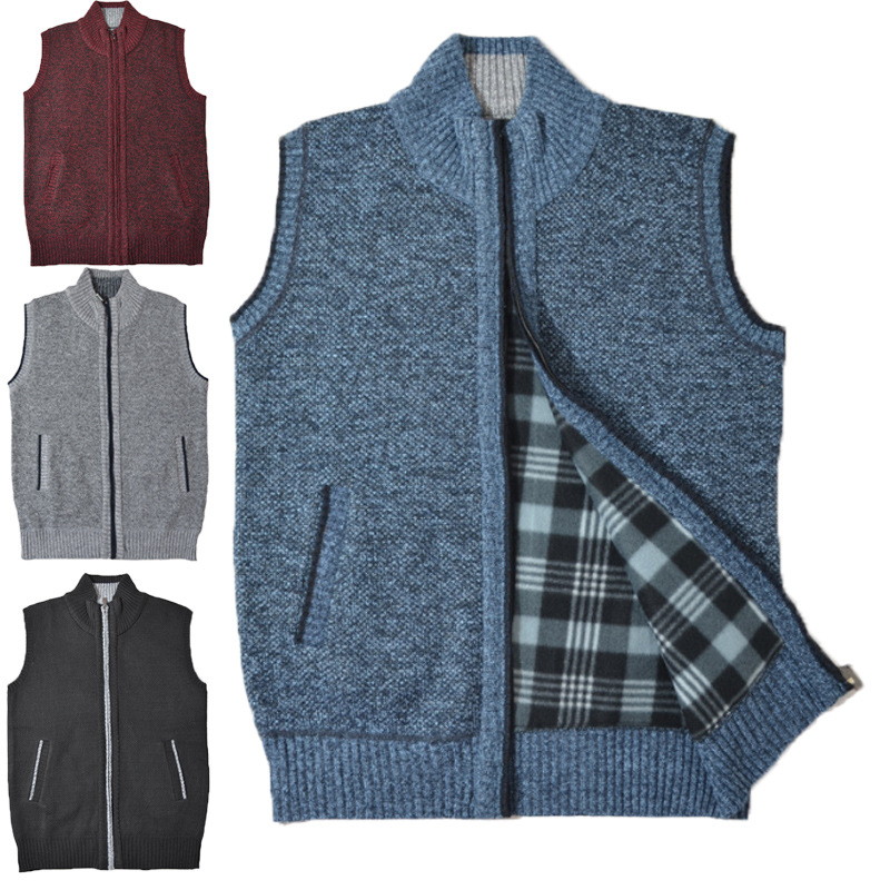 Оптовая продажа мужских кардиганов-жилетов больших размеров со воротником-стойкой, утепленных и на флисовой подкладке, вязаных на молнии для мужчин среднего и старшего возраста.
