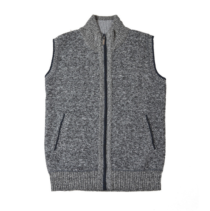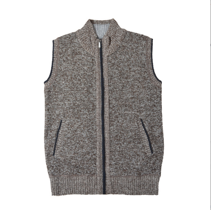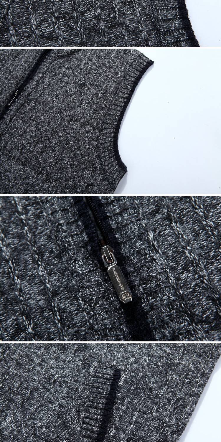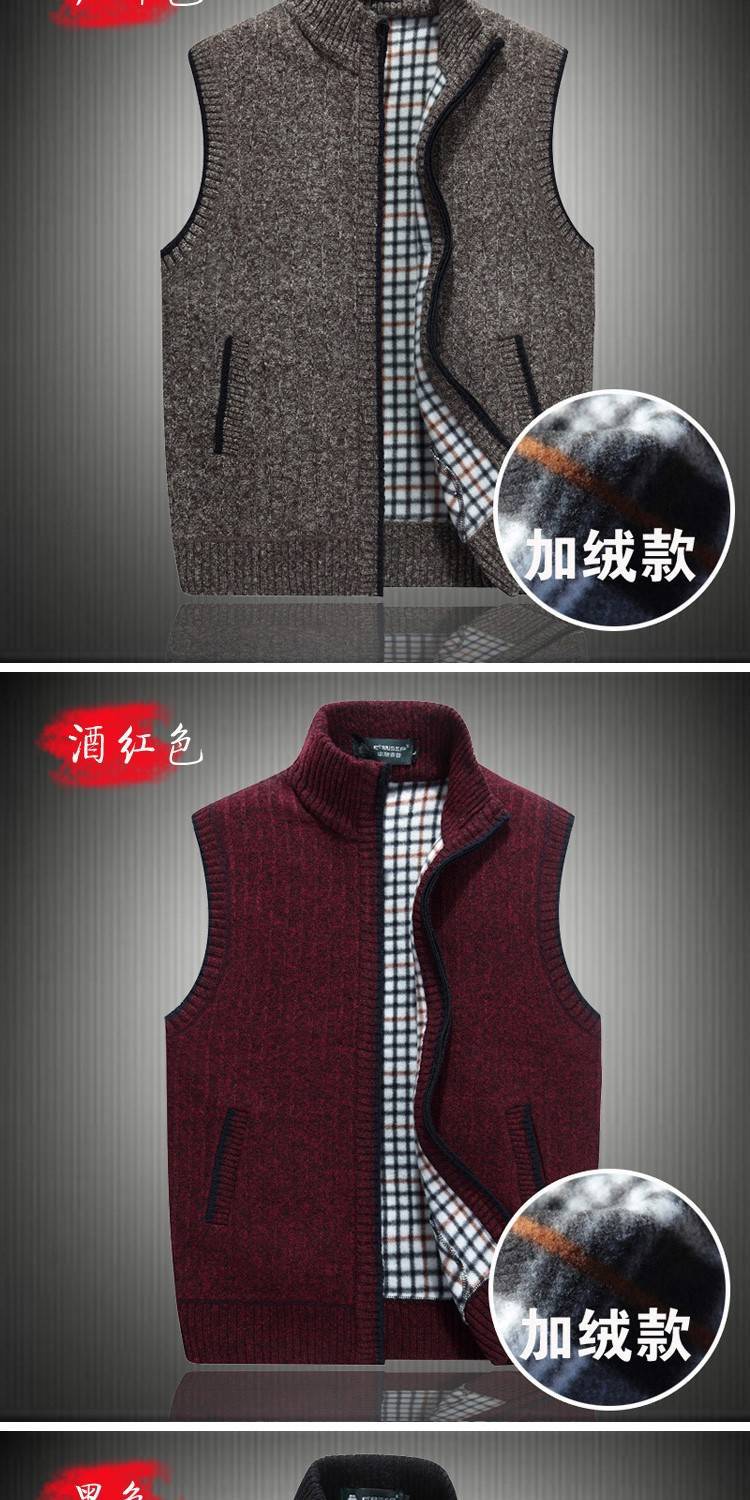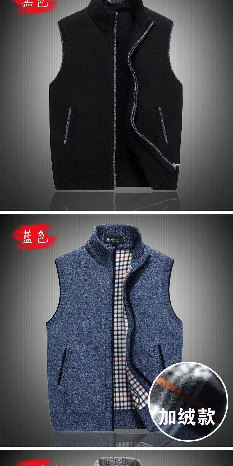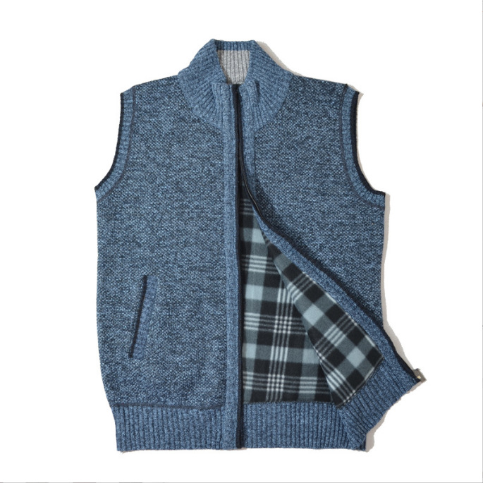 Оптовая продажа мужских кардиганов-жилетов больших размеров со воротником-стойкой, утепленных и на флисовой подкладке, вязаных на молнии для мужчин среднего и старшего возраста.
