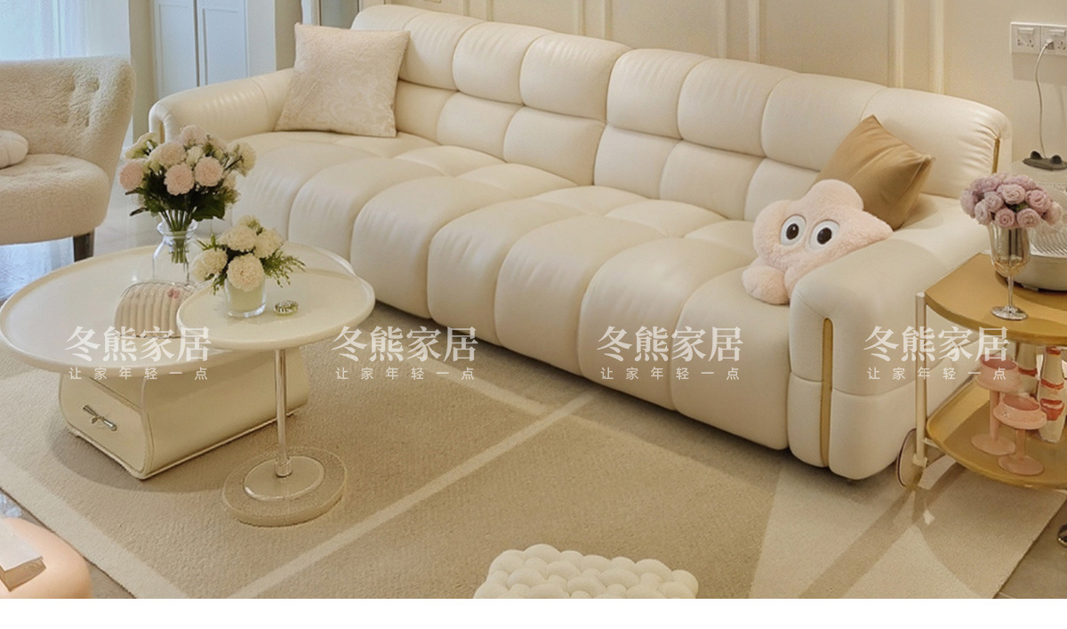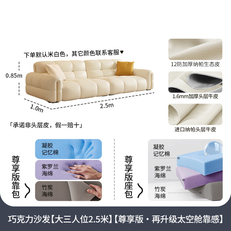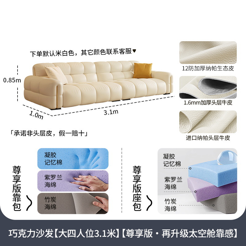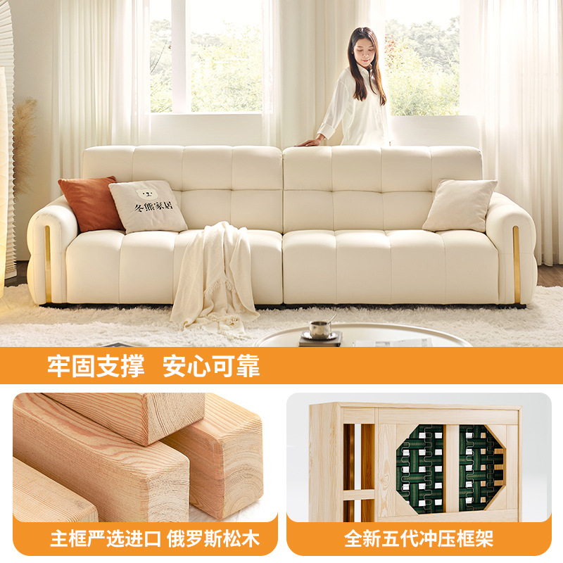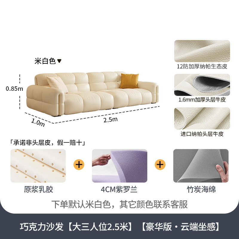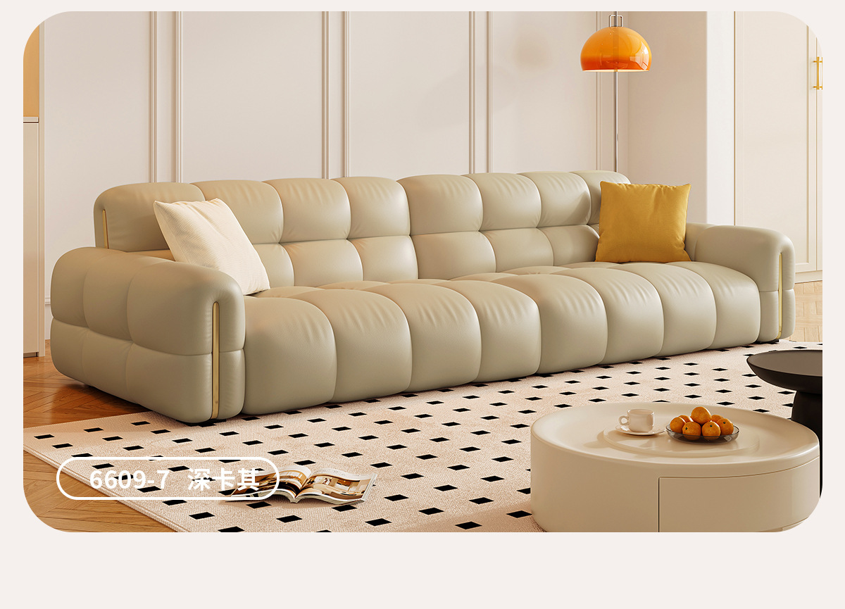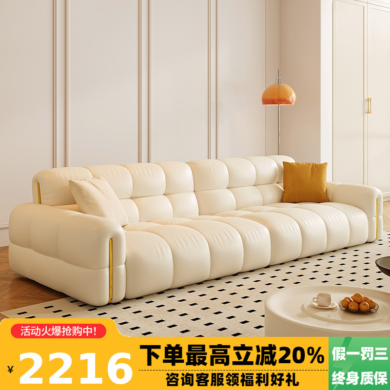 Tongyuite Light Роскошный шоколадный диван с клавишами фортепиано, прямой ряд, маленькая квартира, гостиная, кремовый стиль, пуховый кожаный диван