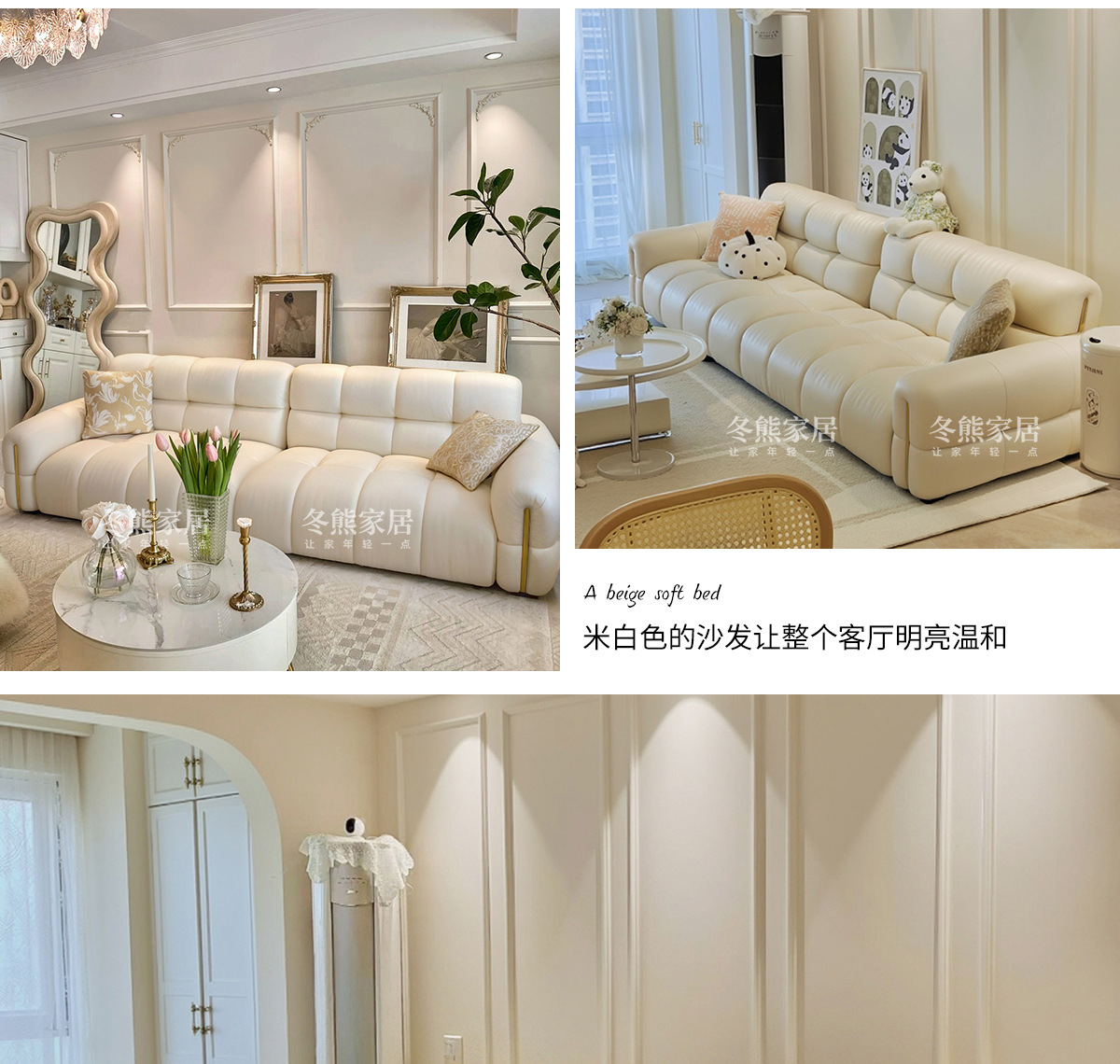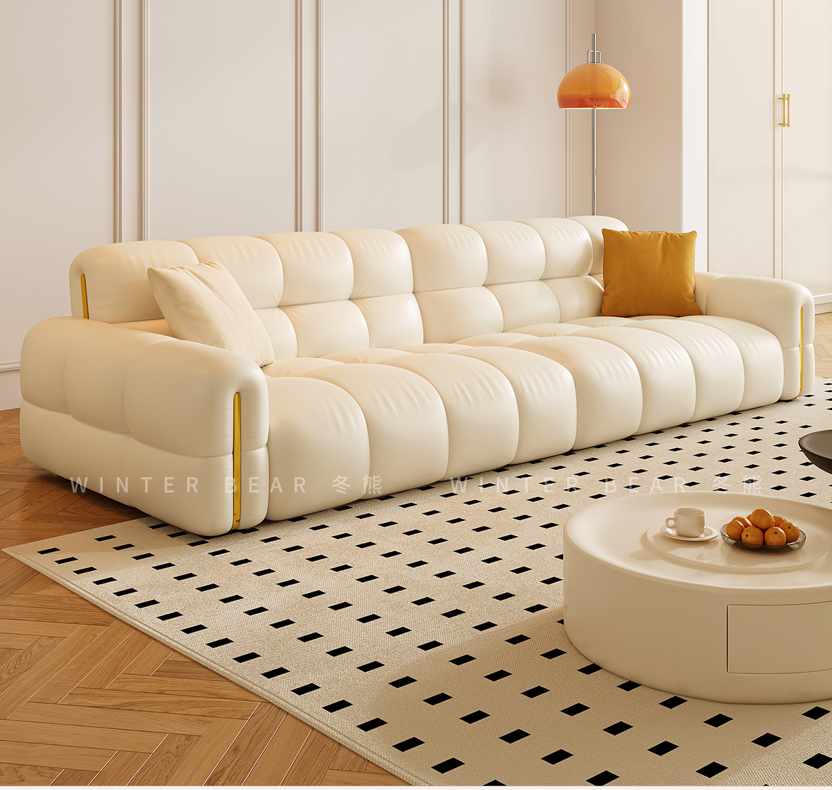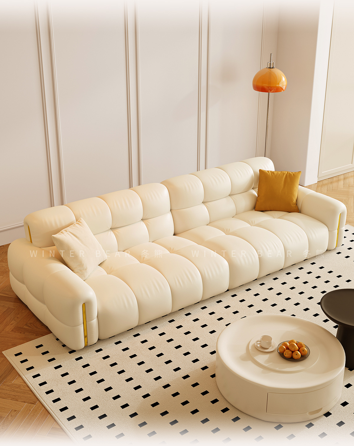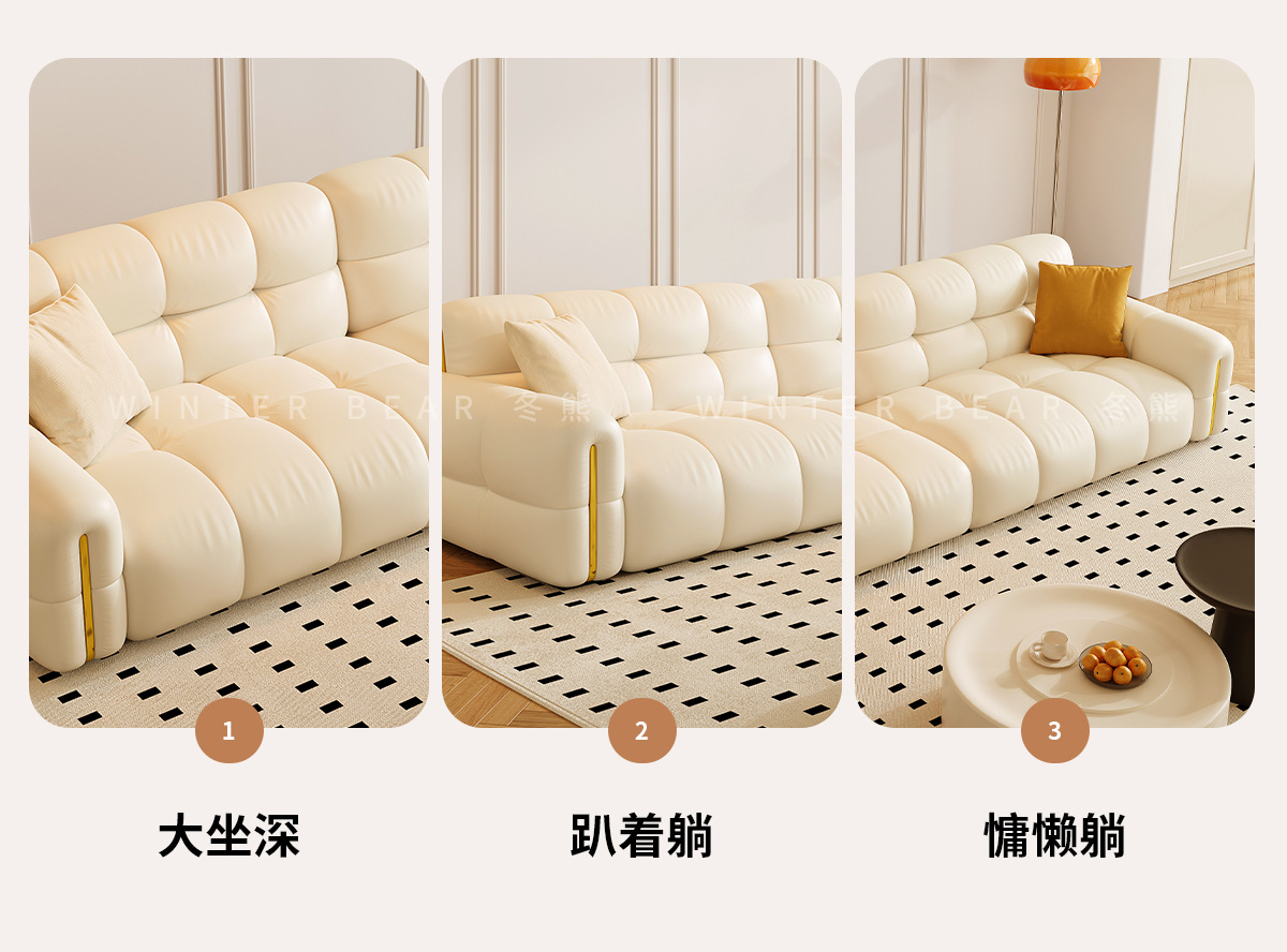 Tongyuite Light Роскошный шоколадный диван с клавишами фортепиано, прямой ряд, маленькая квартира, гостиная, кремовый стиль, пуховый кожаный диван