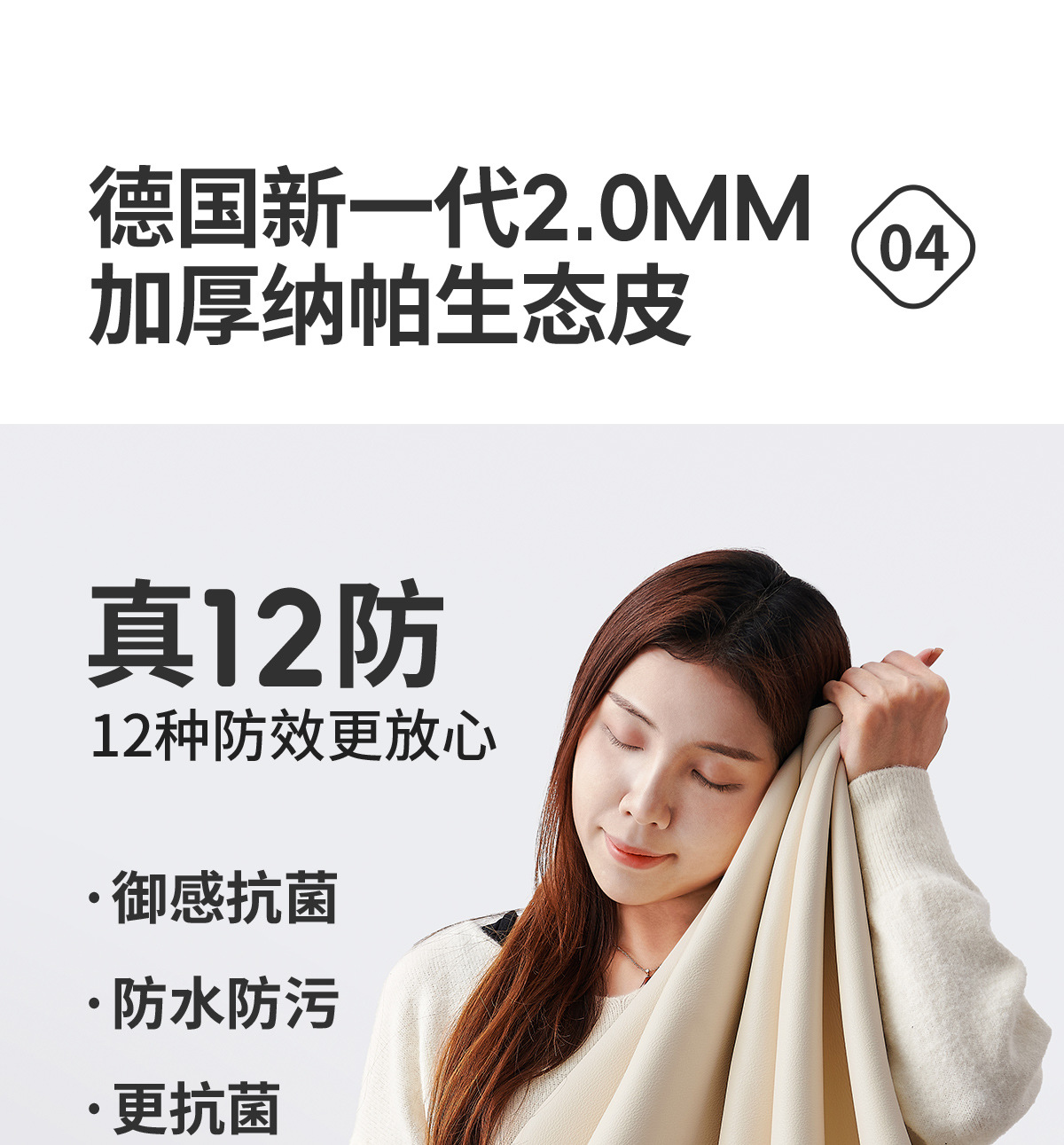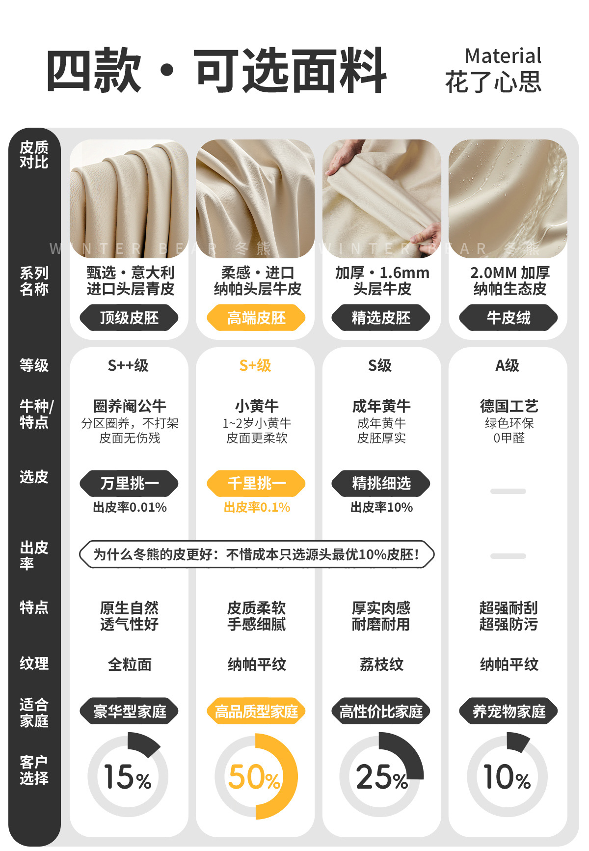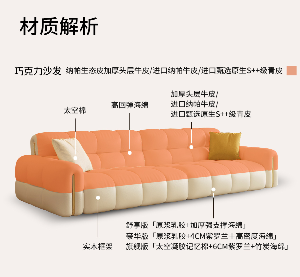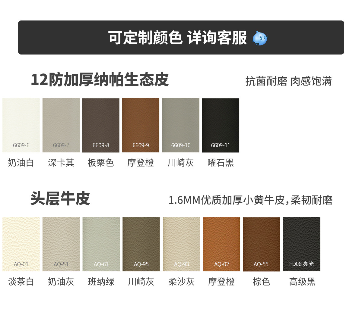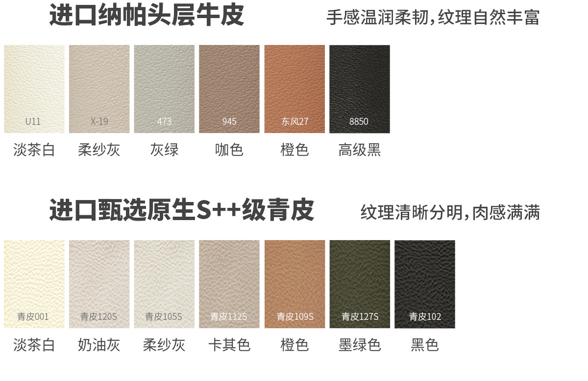 Экологическая кожа наппа [по умолчанию кремово-белый 2278-2]; Утолщенная воловья кожа первого слоя [светлый чай белого цвета по умолчанию AQ-01]; Первый слой коровьей кожи наппа [по умолчанию светло-чай белый DF-U11]; Зеленая кожа Native S++ [по умолчанию Shuxin 001 White]