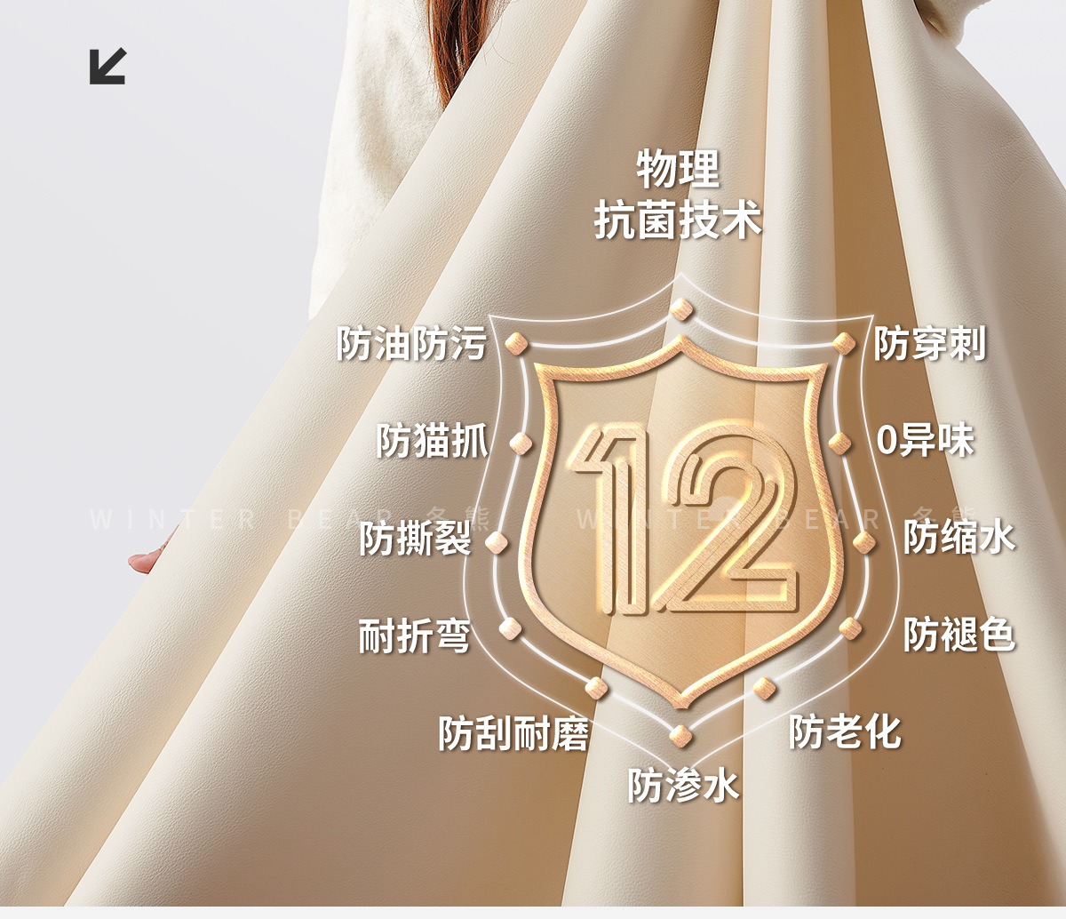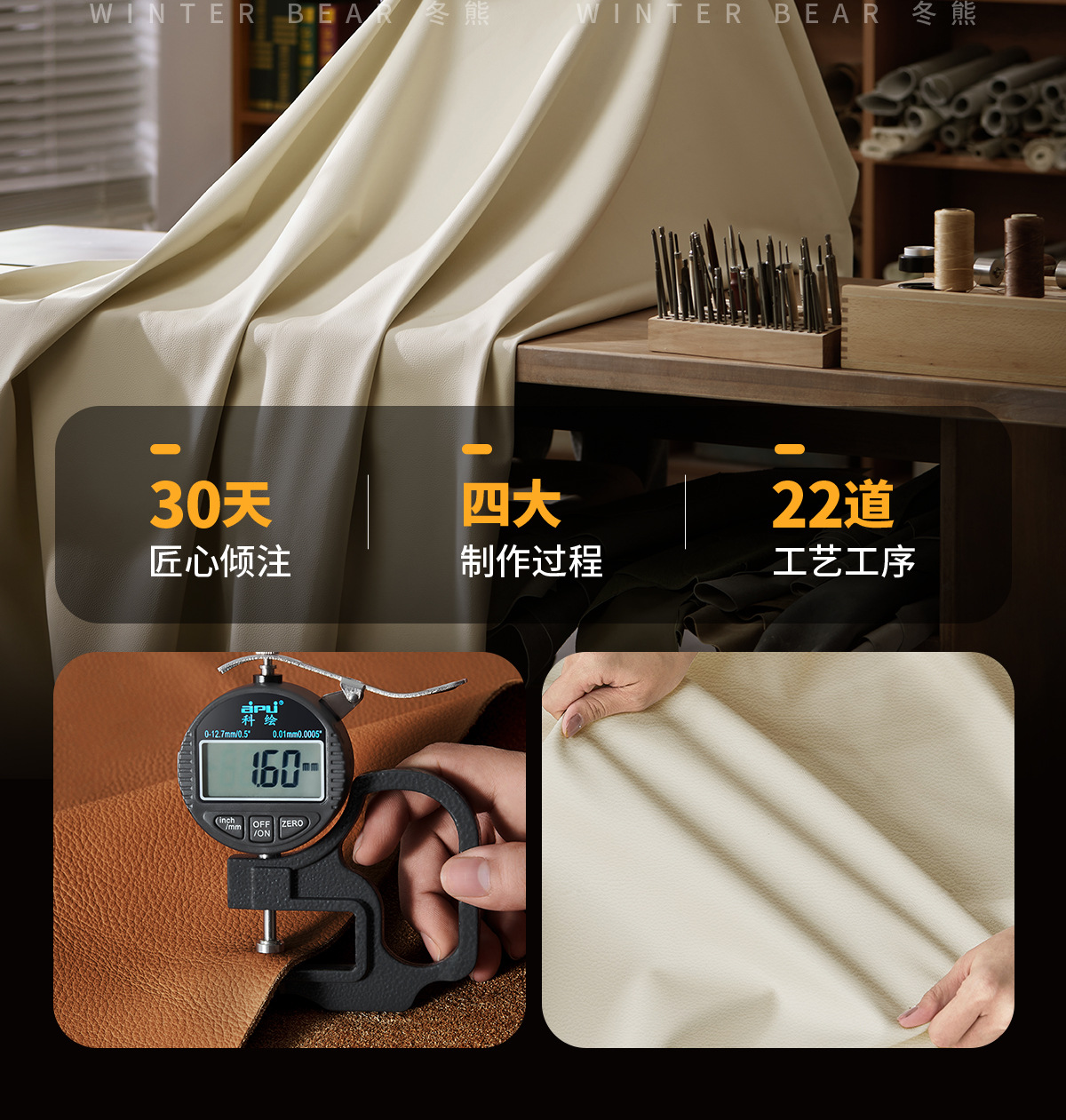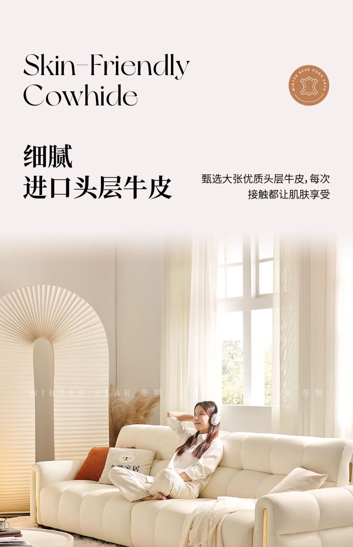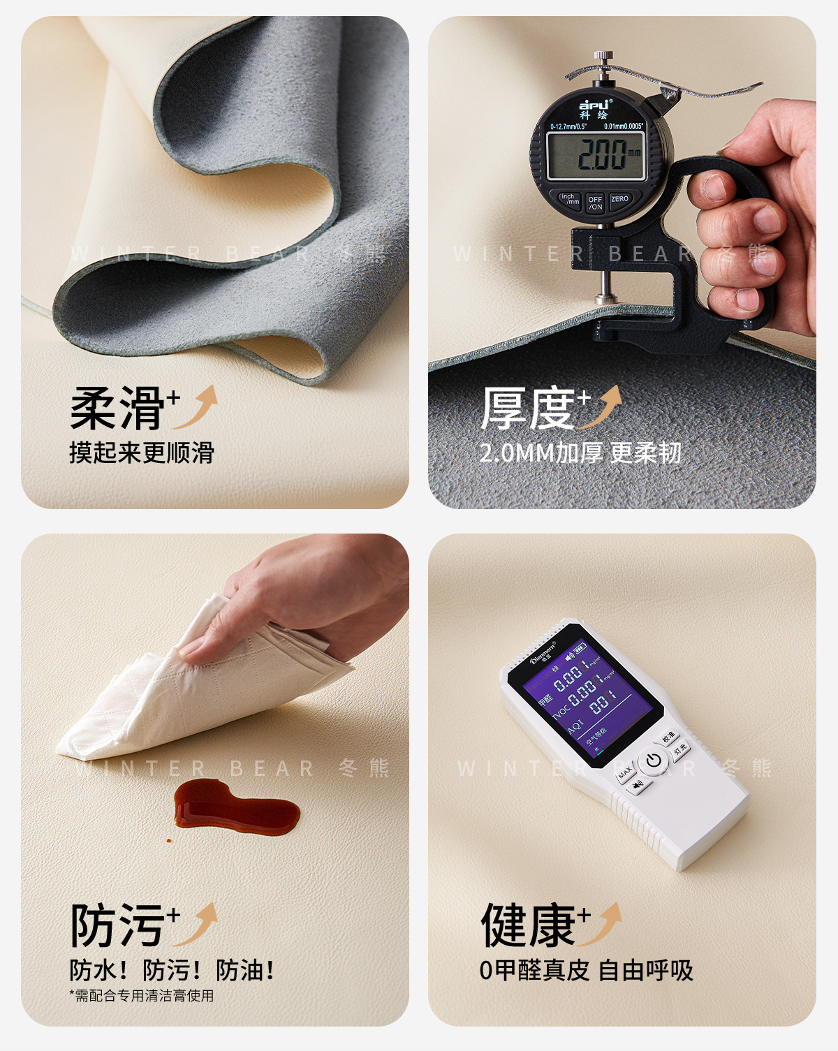 Экологическая кожа наппа [по умолчанию кремово-белый 2278-2]; Утолщенная воловья кожа первого слоя [светлый чай белого цвета по умолчанию AQ-01]; Первый слой коровьей кожи наппа [по умолчанию светло-чай белый DF-U11]; Зеленая кожа Native S++ [по умолчанию Shuxin 001 White]
