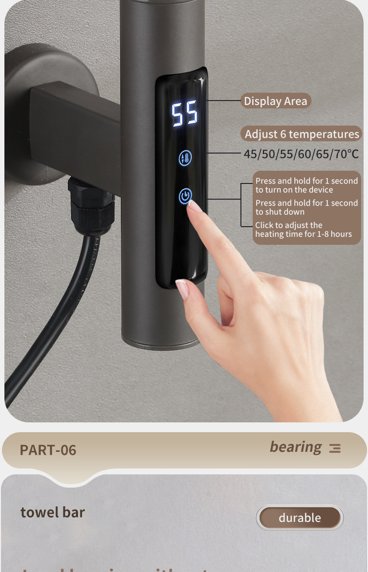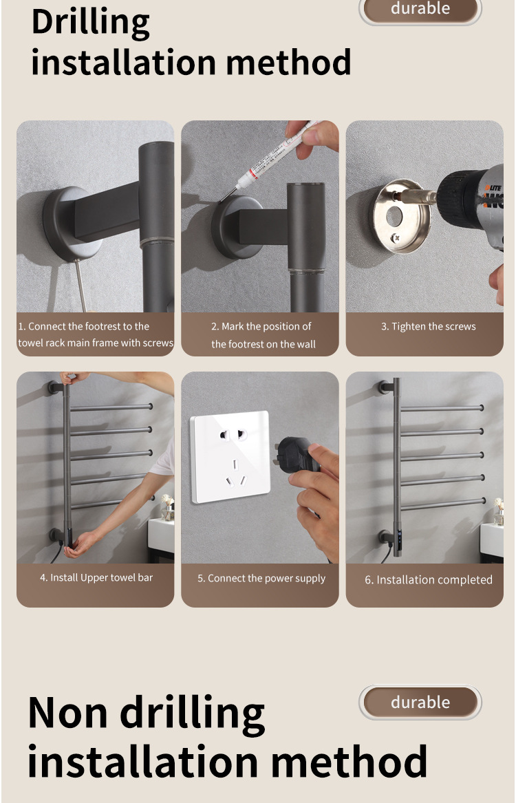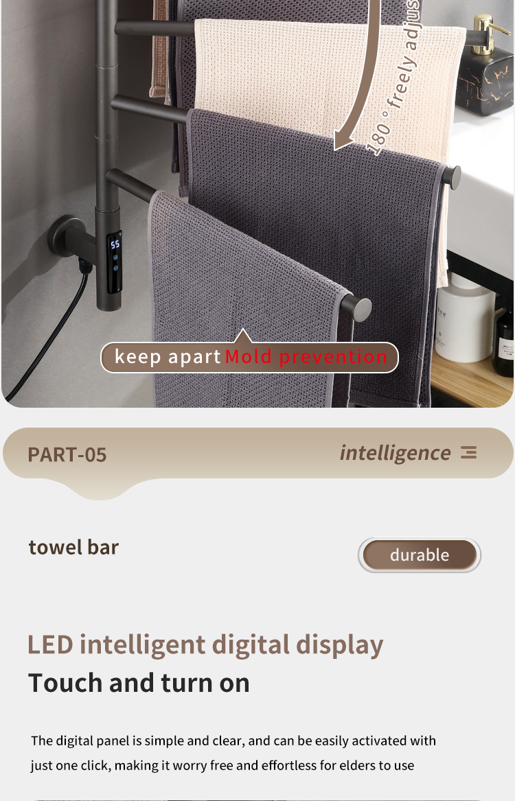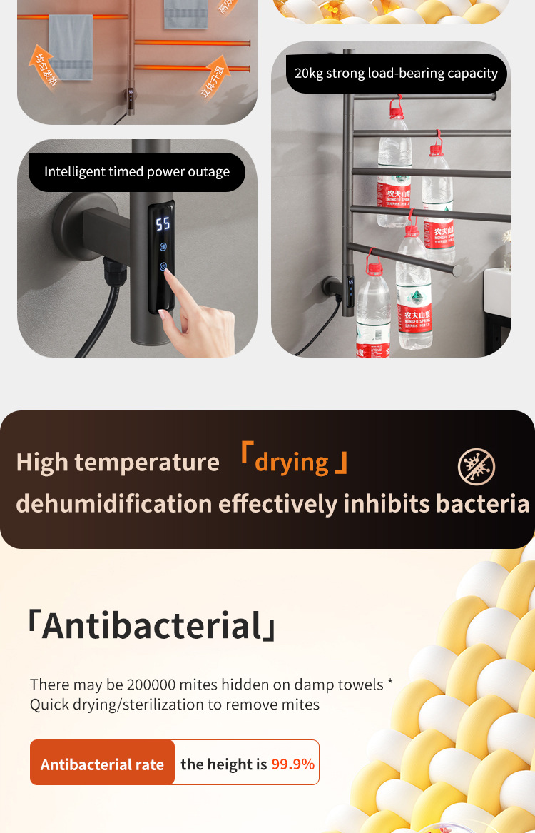 Интеллектуальная электрическая вешалка для полотенец без перфорации для домашней ванной комнаты, сушилка с подогревом, трансграничный производитель Amazon, оптовая продажа