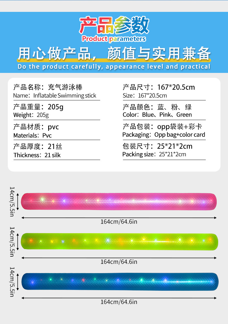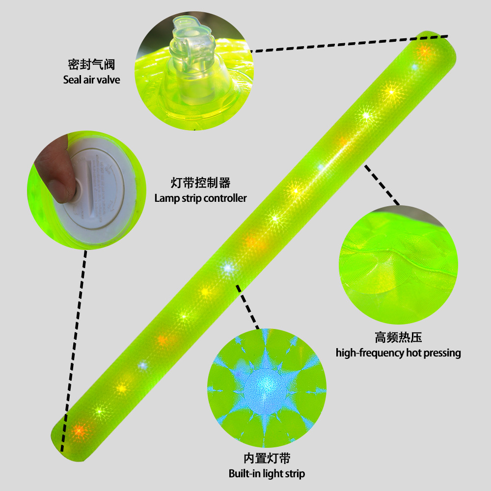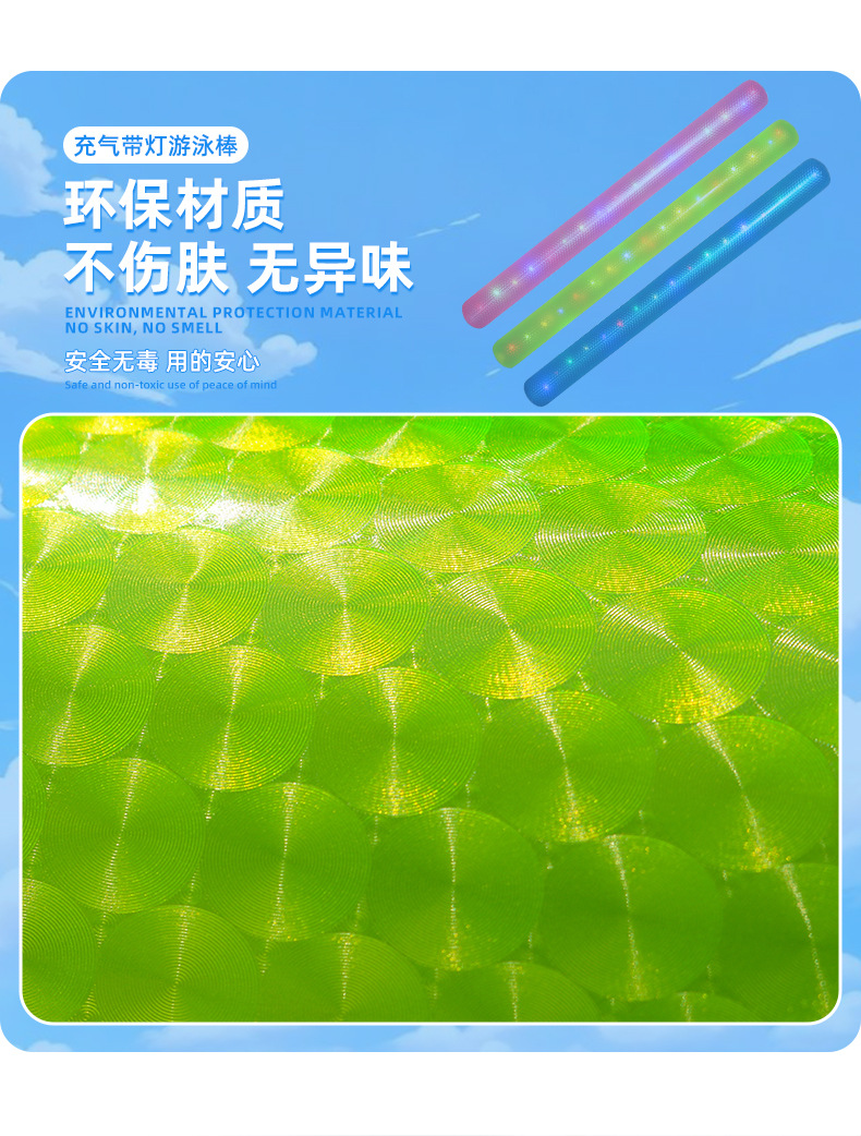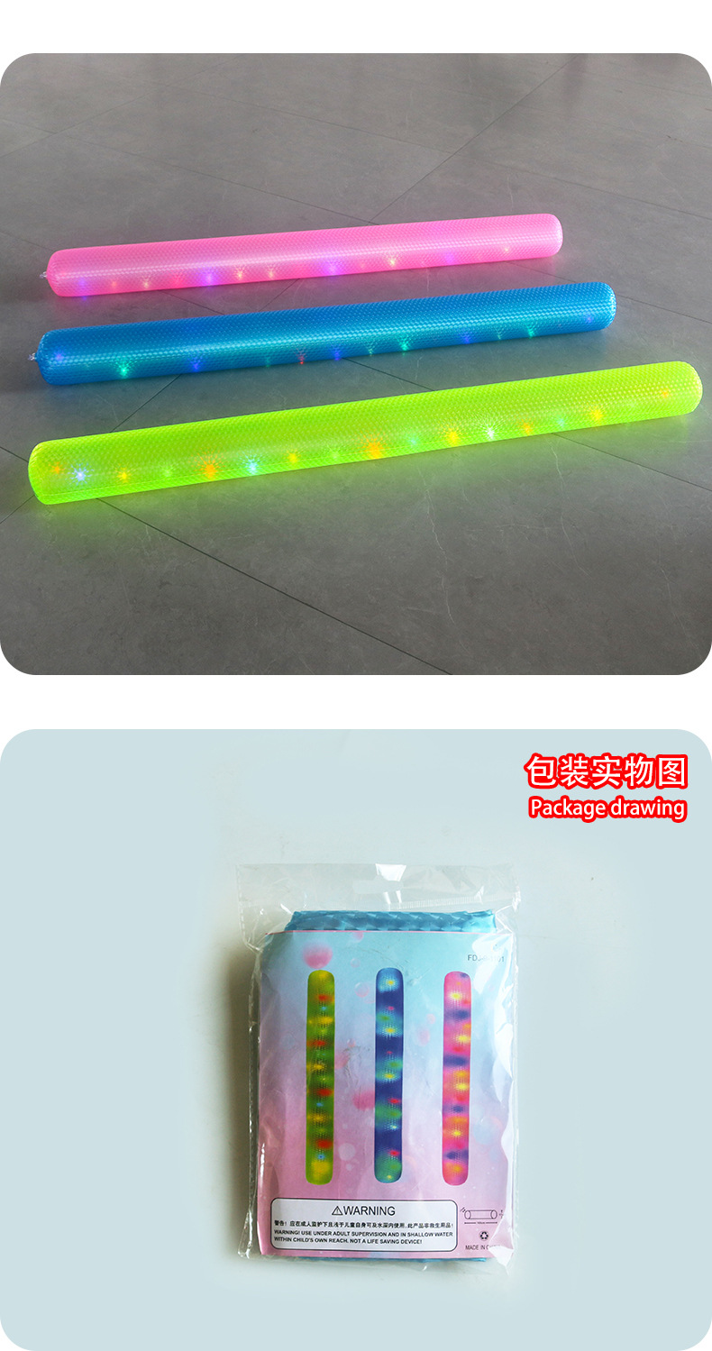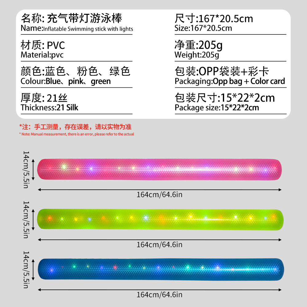 跨境新款pvc充气游泳棒 加厚纯色带灯发光辅助戏水玩具游泳漂浮棒