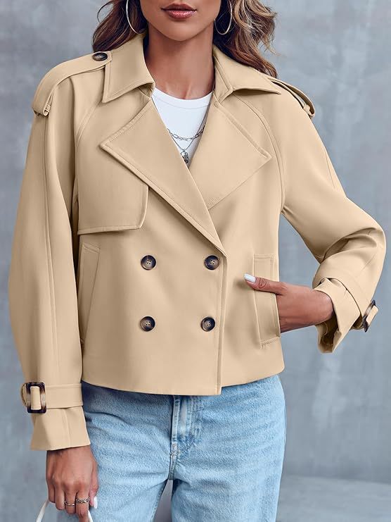 Трансграничная осень и зима 2024 новый Amazon леди мода повседневная INS карманный короткий двубортный плащ куртка