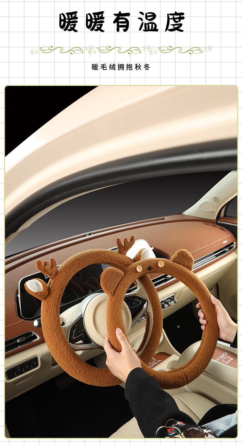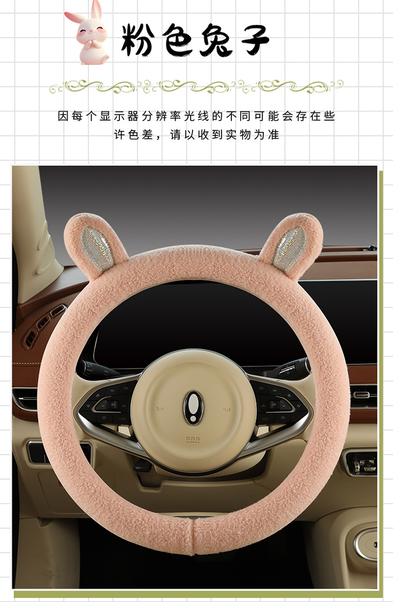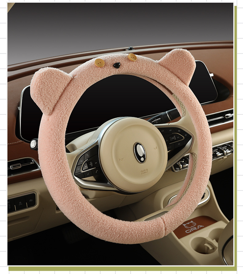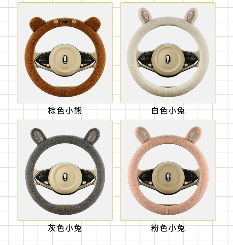 Автомобильный чехол для рулевого колеса зимний мультфильм плюшевый сетка красный милый женский теплый противоскользящий D-образный чехол для автомобиля зимой