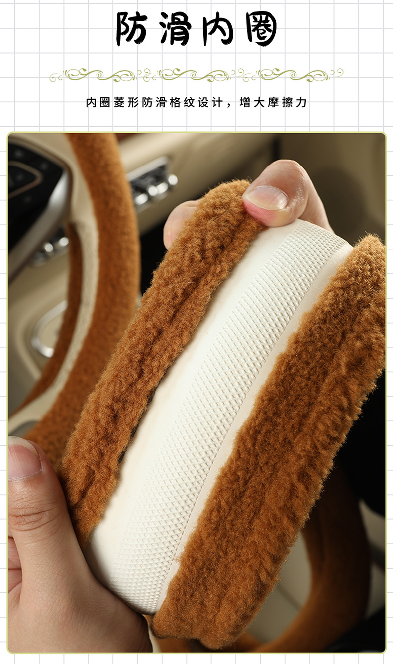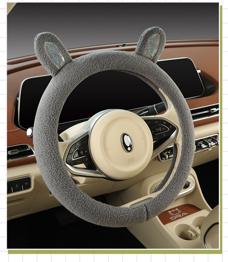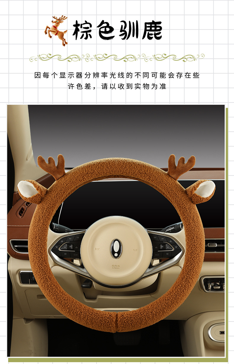 Автомобильный чехол для рулевого колеса зимний мультфильм плюшевый сетка красный милый женский теплый противоскользящий D-образный чехол для автомобиля зимой
