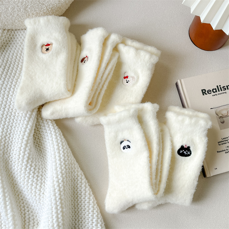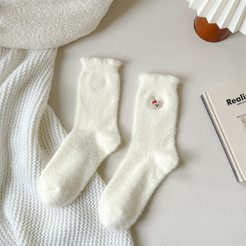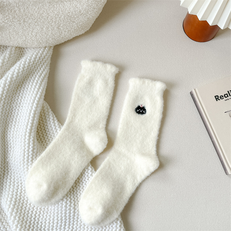 Симпатичные мультяшные норковые бархатные носки женские белые средние носки утолщенные и бархатные осенью и зимой теплые домашние спать
