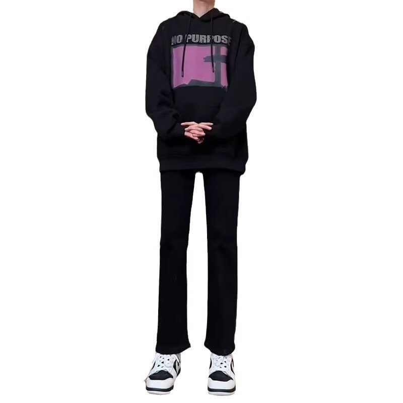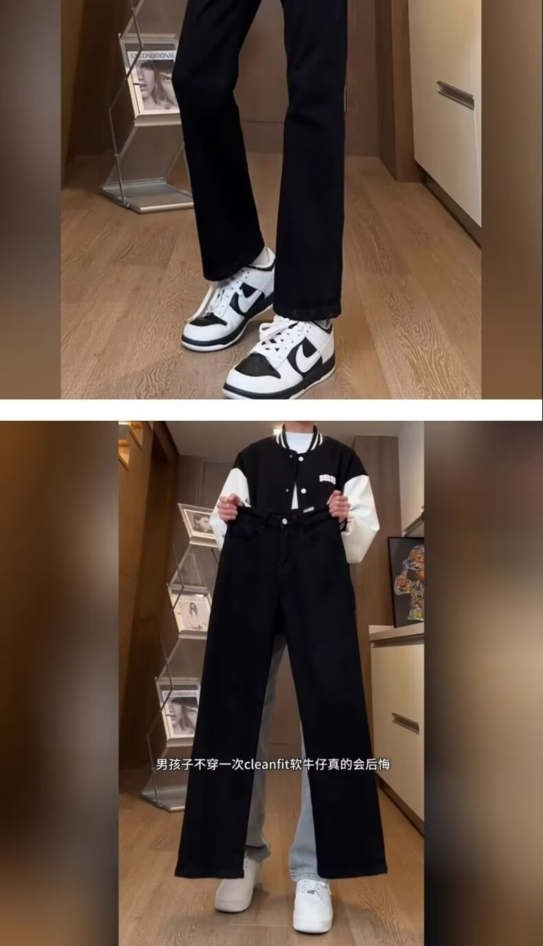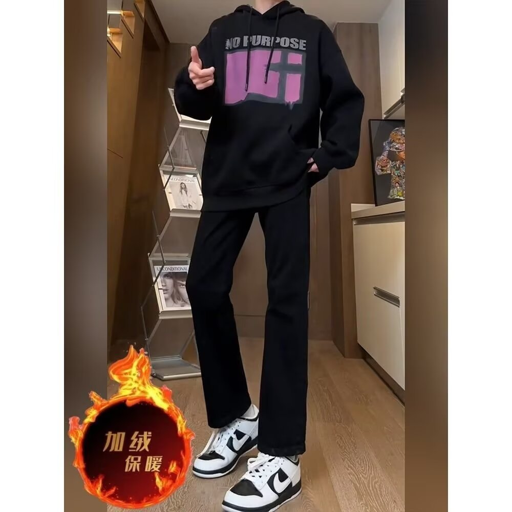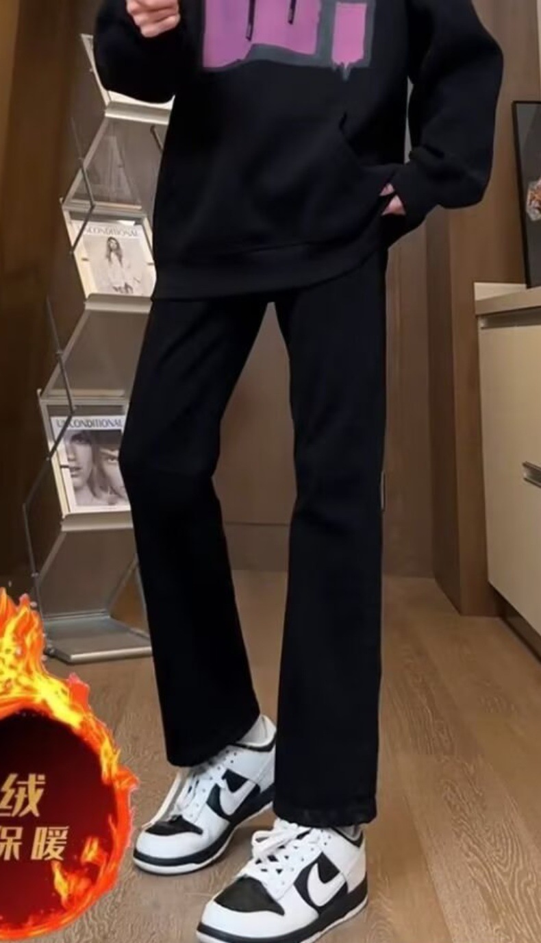 Зимние черные джинсы-буткат для мужчин и женщин, прямые длинные брюки в стиле ретро с флисовой подкладкой, облегающие, с эффектом потертости.