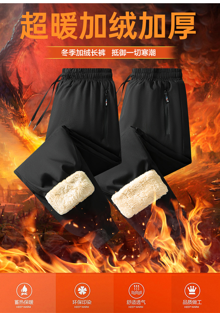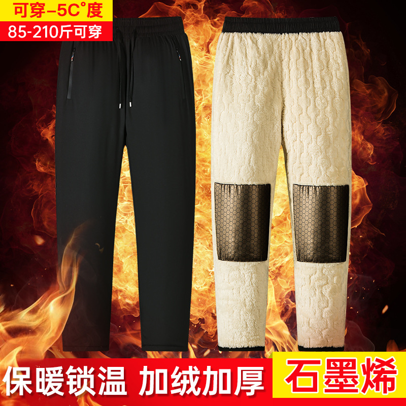 Мужские толстые хлопковые брюки на флисовой подкладке, осенние и зимние ветрозащитные беговые брюки, повседневные брюки с манжетами из графена, теплые спортивные штаны больших размеров.