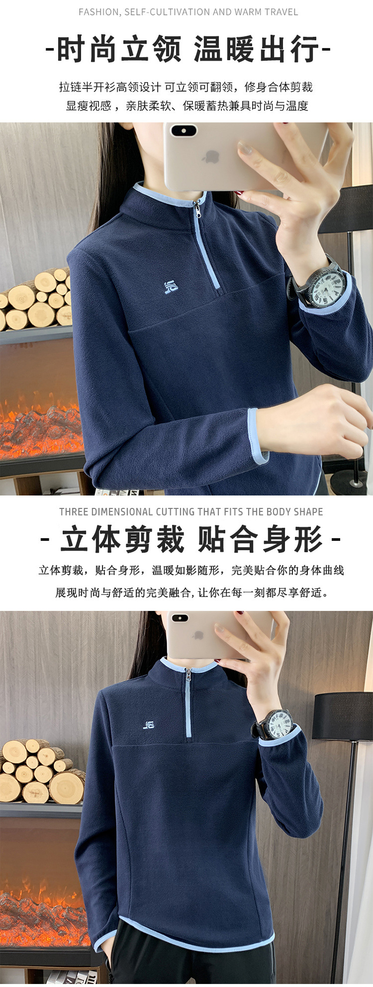 24C91 новый 2024 спортивный открытый полузастежка-молния плотный бархатный воротник нижний пиджак женский супер легкий флисер
