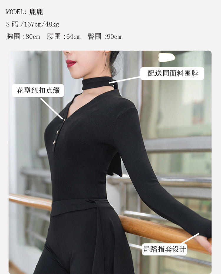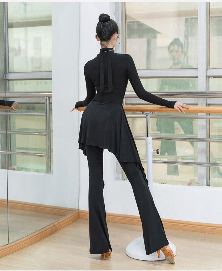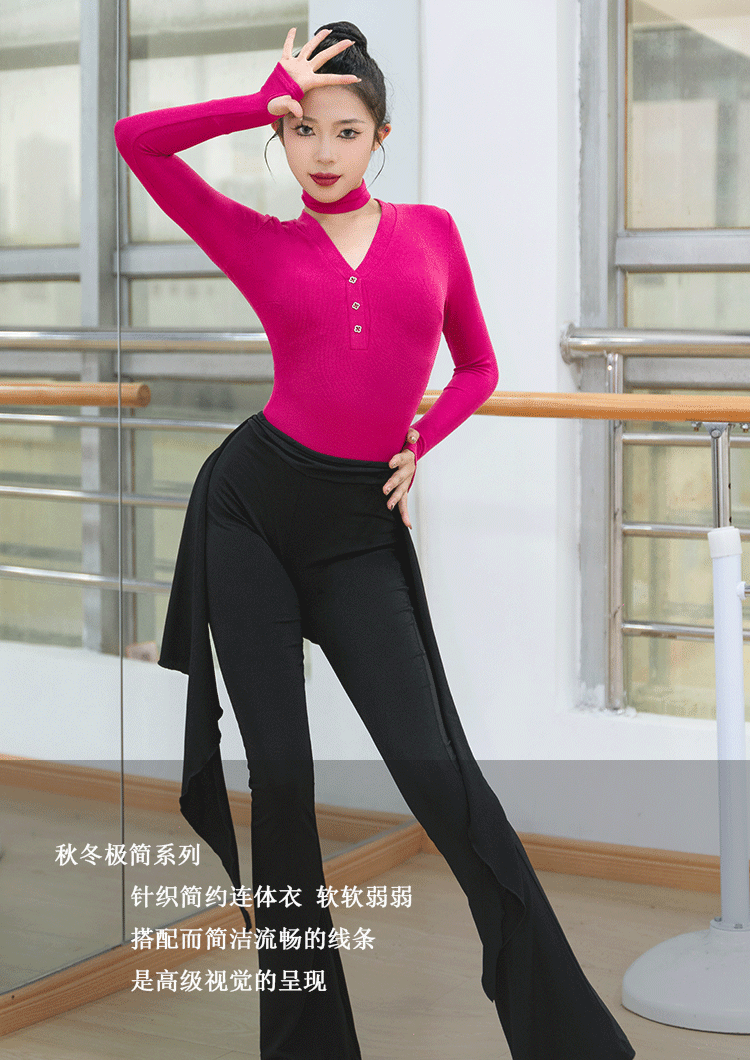 Латинский танец трикотажный топ осенний новый взрослый с длинными рукавами