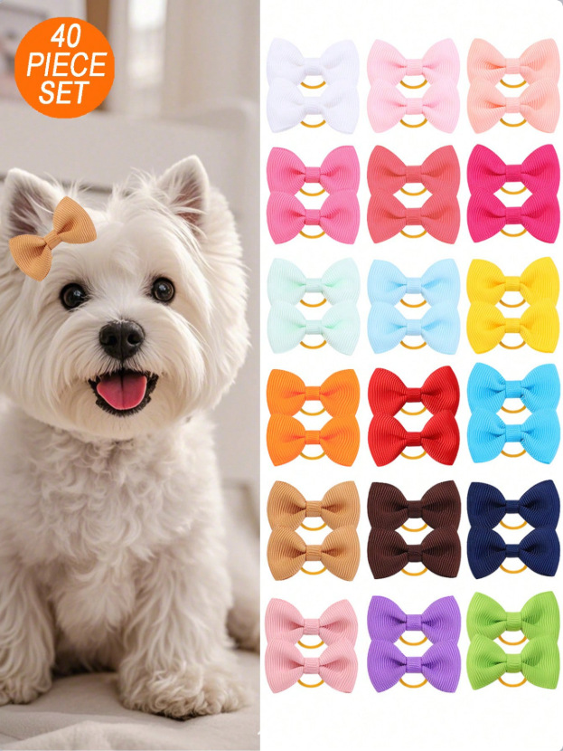 【名称】跨境亚马逊新款蝴蝶结发饰宠物头发皮筋猫狗配饰现货马卡龙发圈