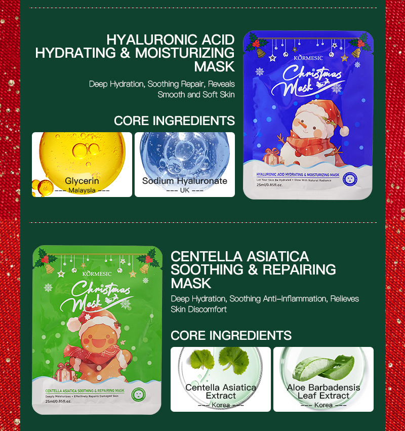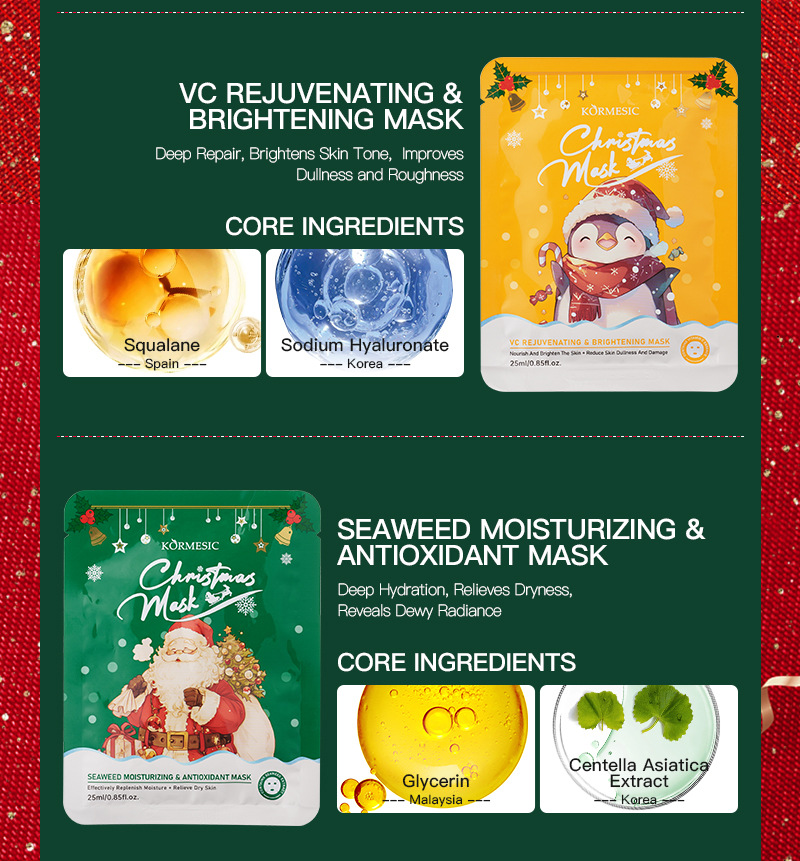 Маска для лица KORMESIC из рождественской серии, уход за кожей, оптовая продажа от производителя для внешней торговли, в наличии