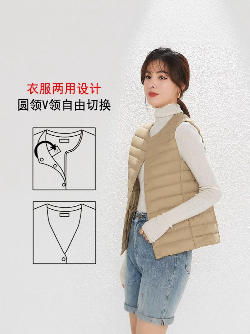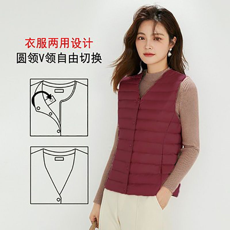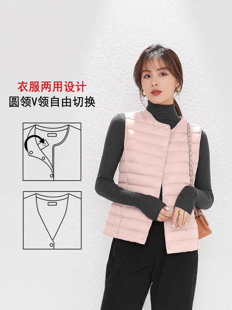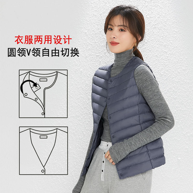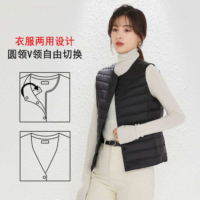 Новый женский без воротника пуховый жилет с V-образным вырезом легкий пуховик теплая куртка большой размер плеча жилет с круглым вырезом