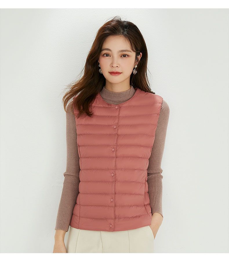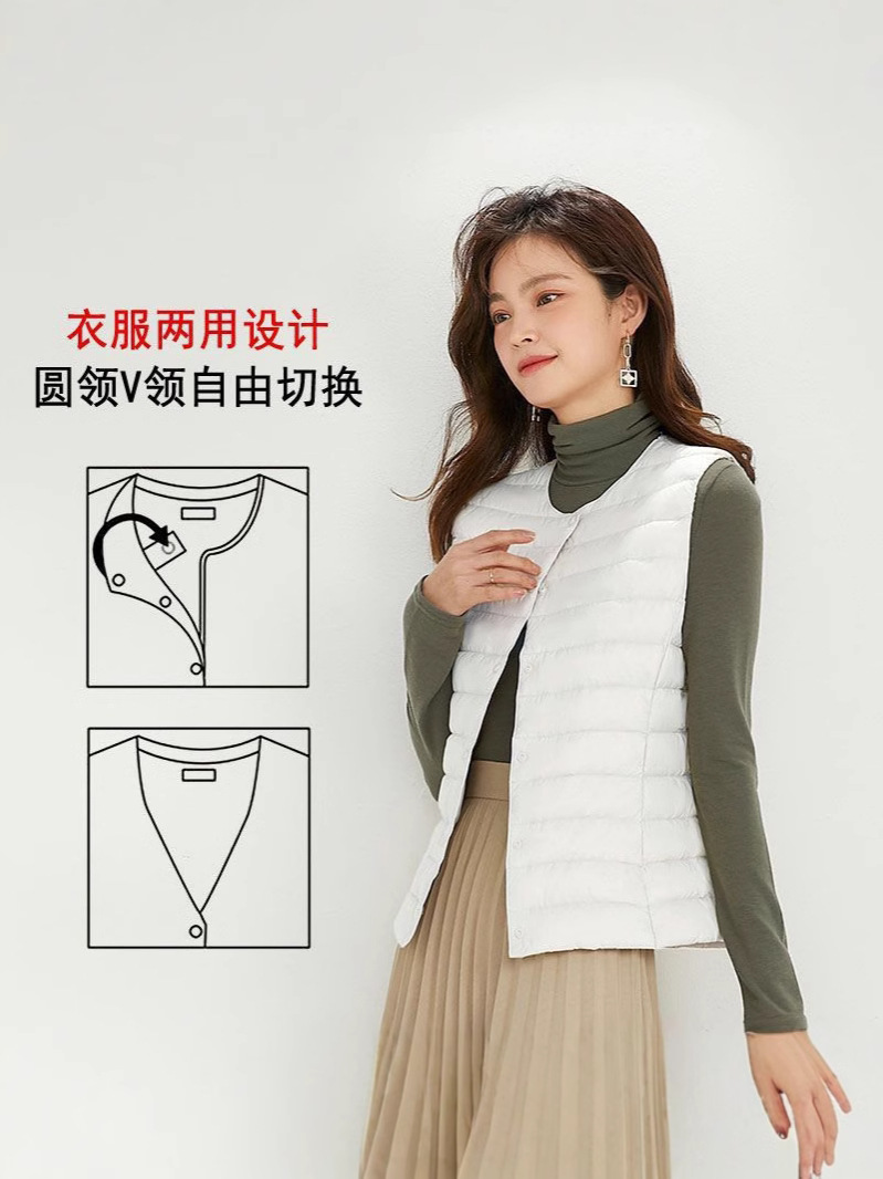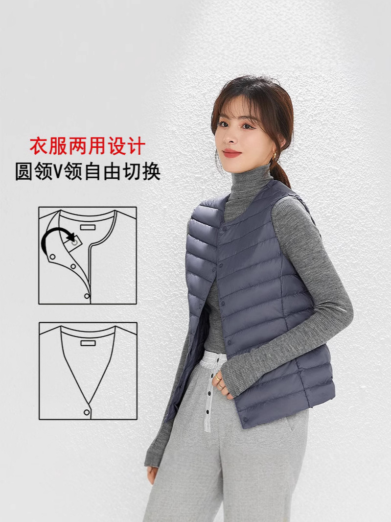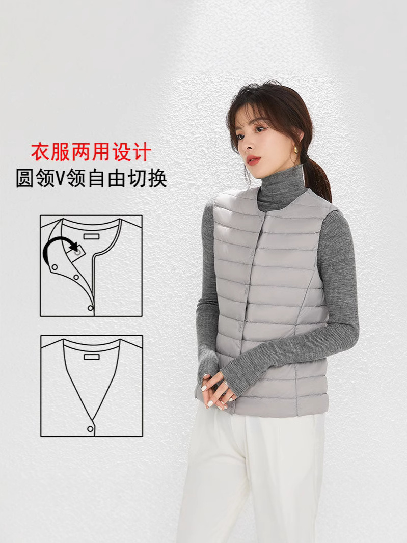 Новый женский без воротника пуховый жилет с V-образным вырезом легкий пуховик теплая куртка большой размер плеча жилет с круглым вырезом