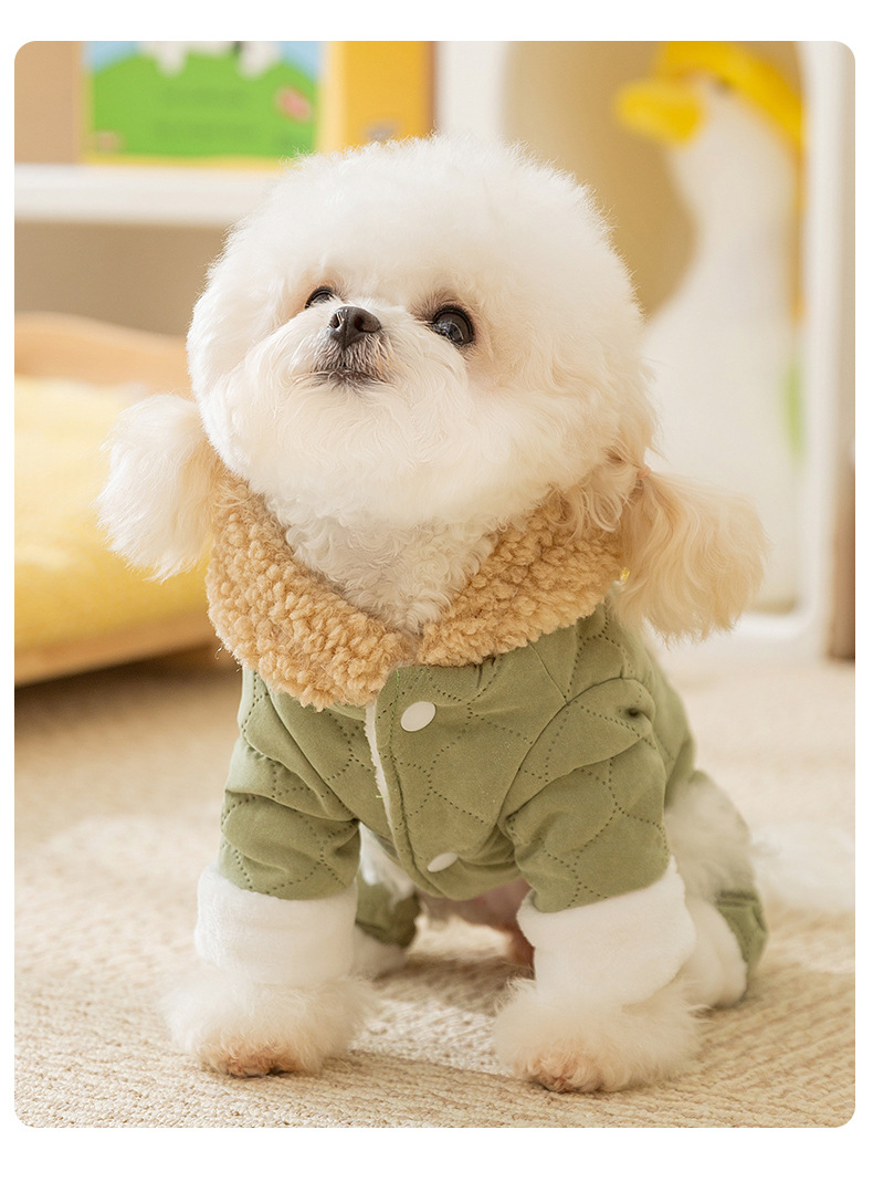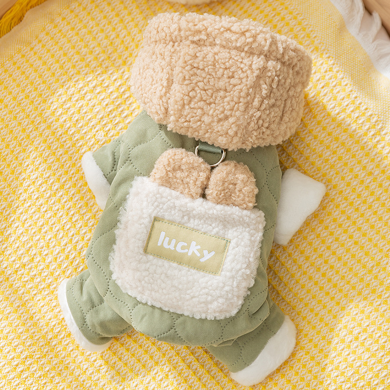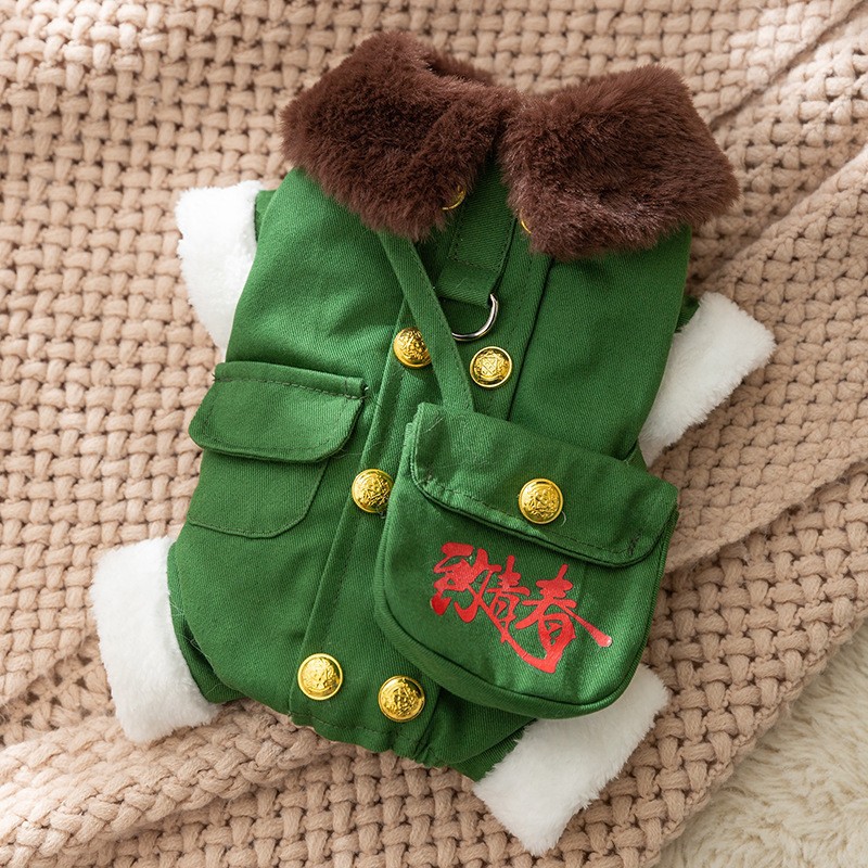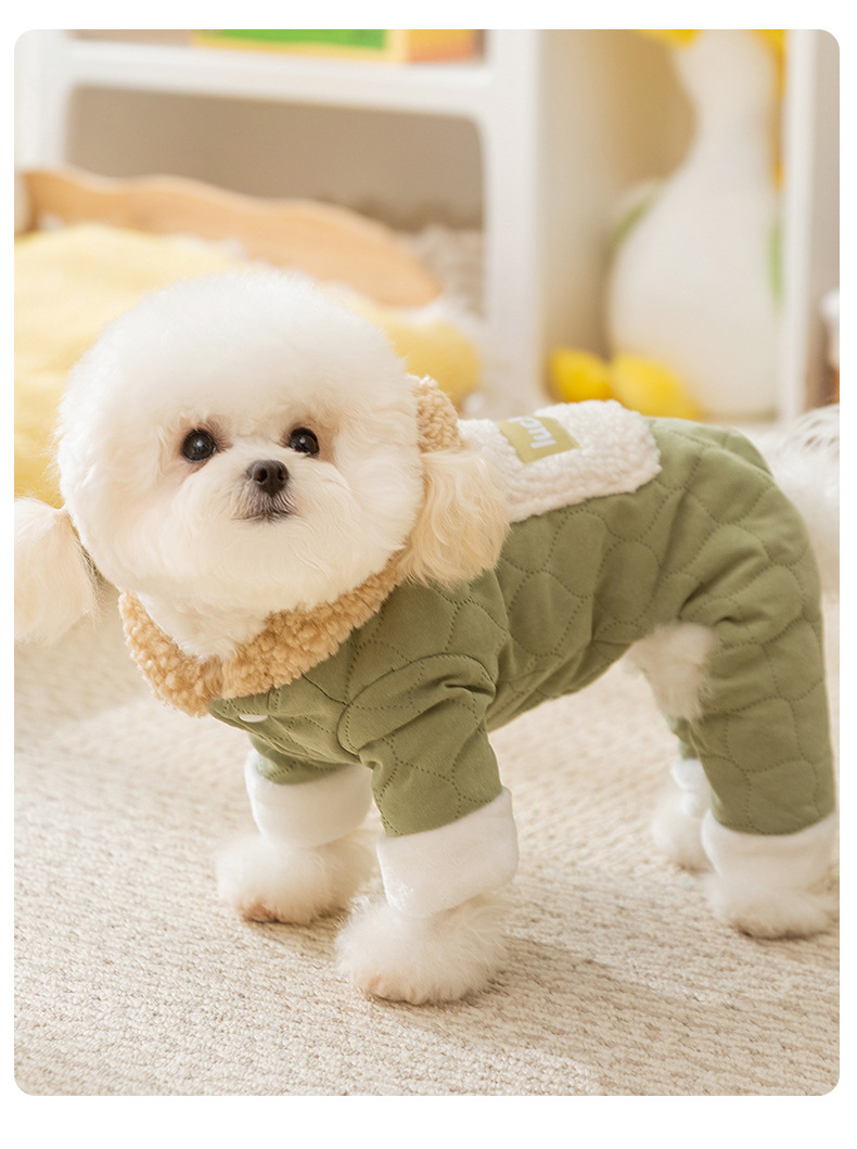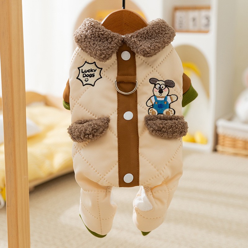 Осенние и зимние собаки утолщены, теплая, стеганые карманы, чтобы тянуть четырехногую хлопчатобумажную одежду