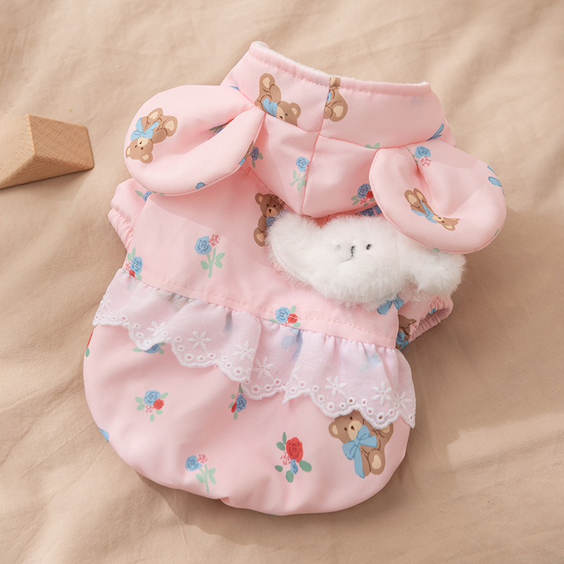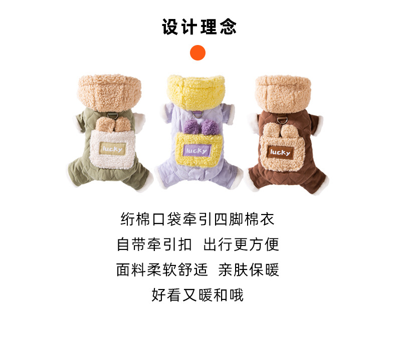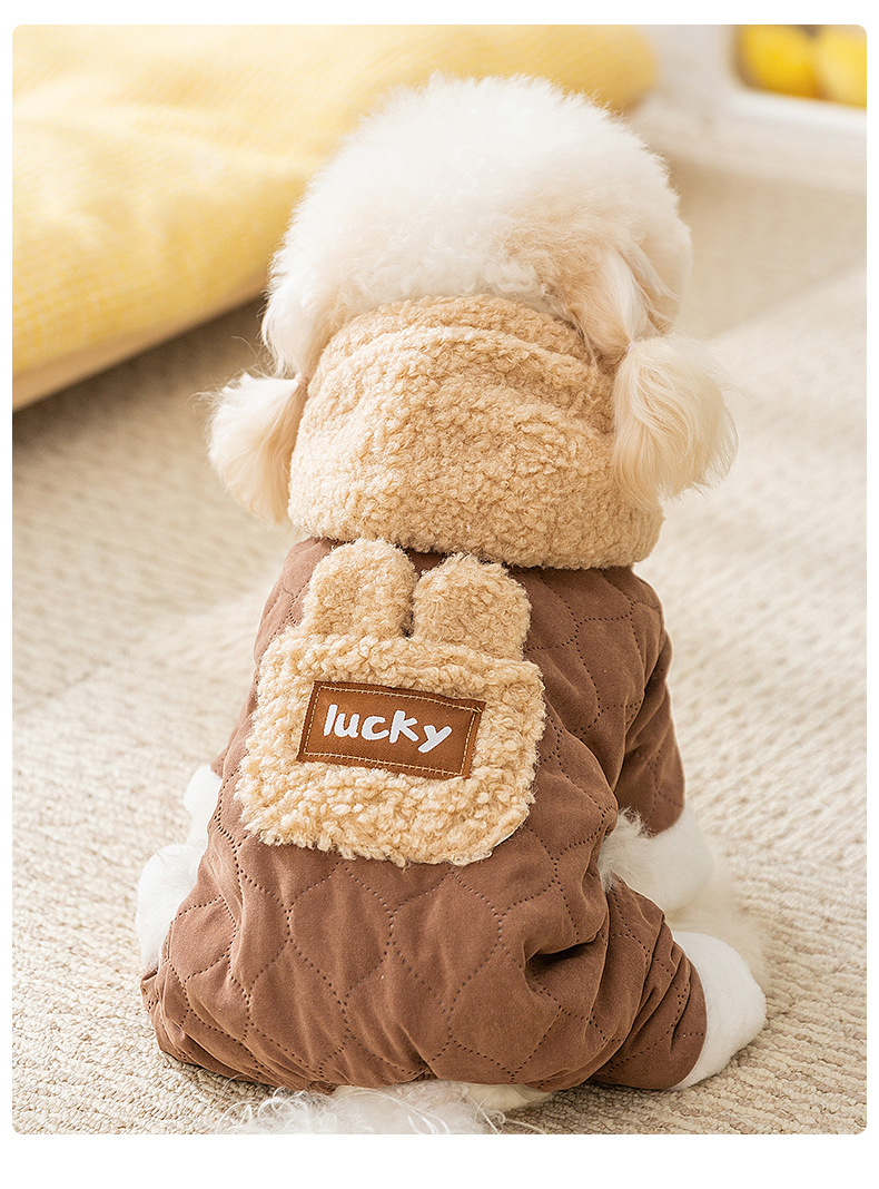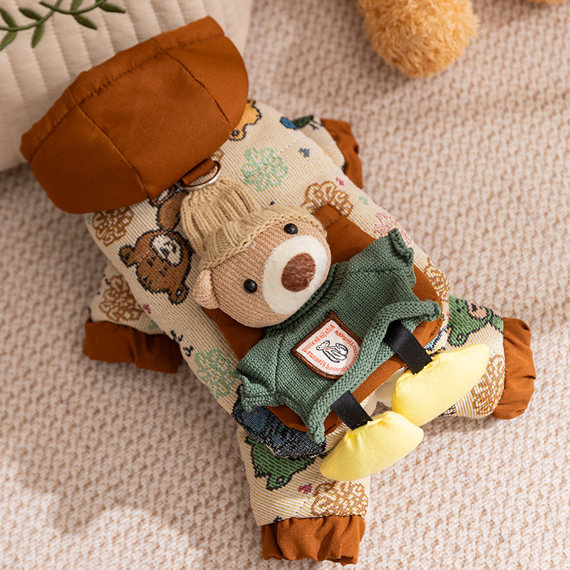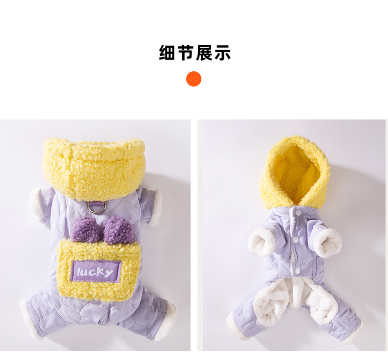 Осенние и зимние собаки утолщены, теплая, стеганые карманы, чтобы тянуть четырехногую хлопчатобумажную одежду